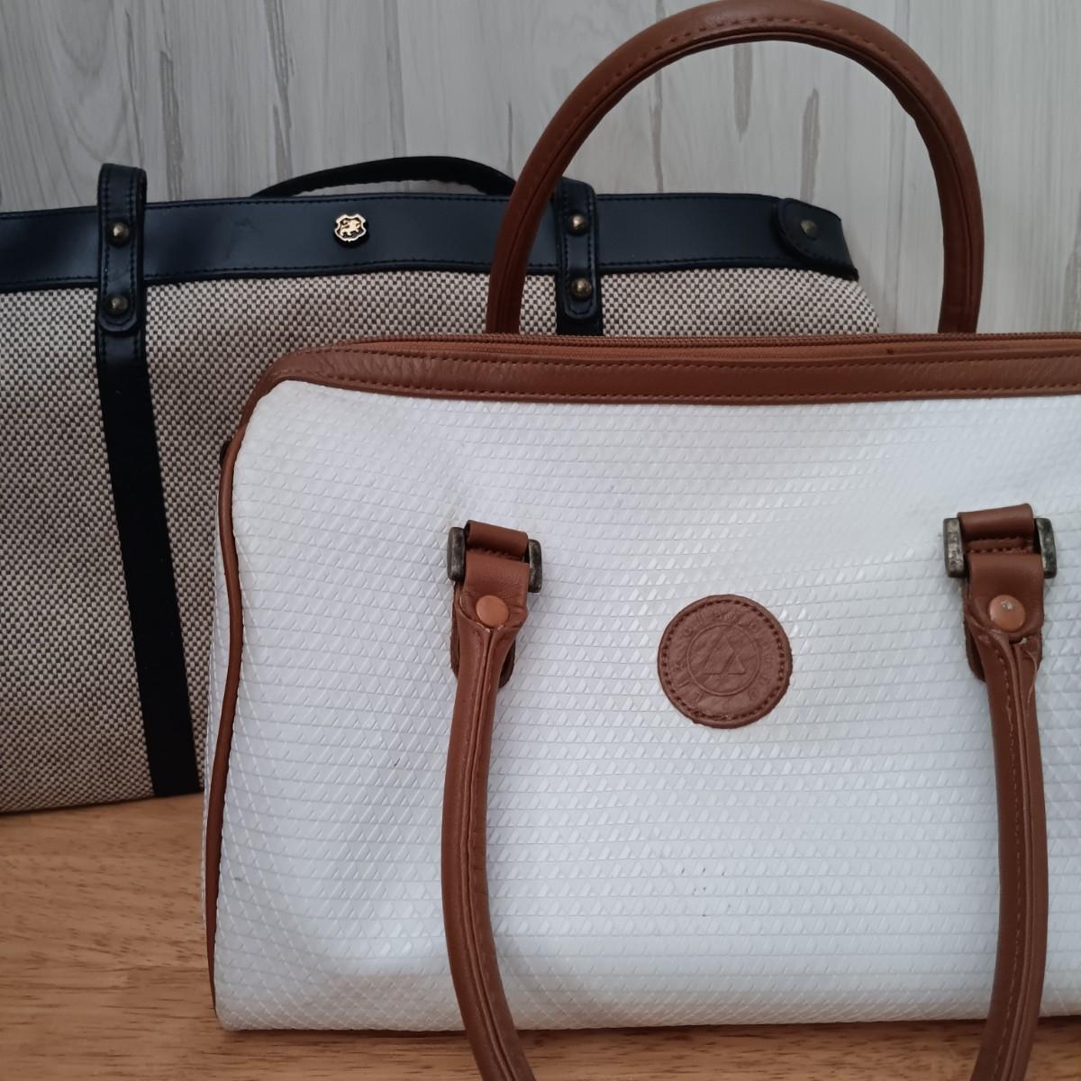 LOT 19: Vintage Liz Claiborne Leather Trim Handbag with Matching Change Purse & John Romain Tweed Handbag