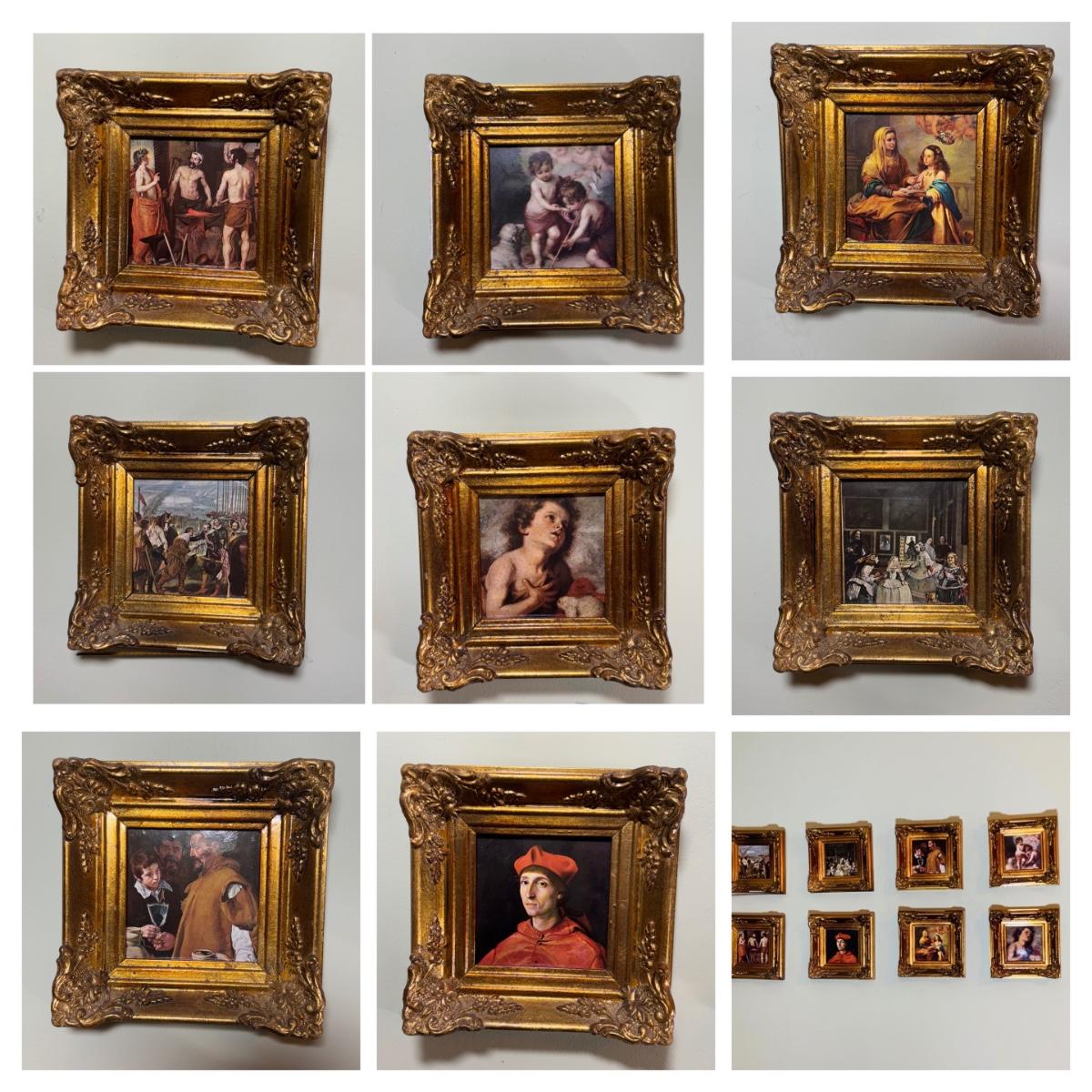 LOT:30: Collection of 8 Miniature Golden Wooden Framed Classical Wall Art