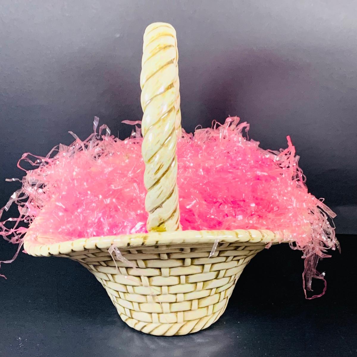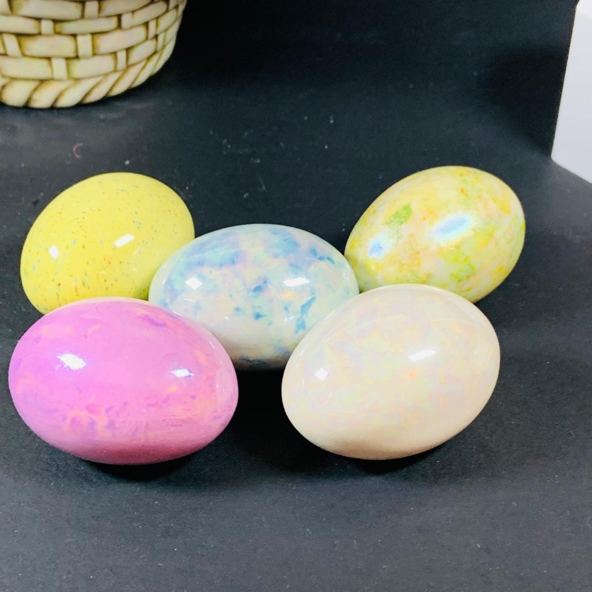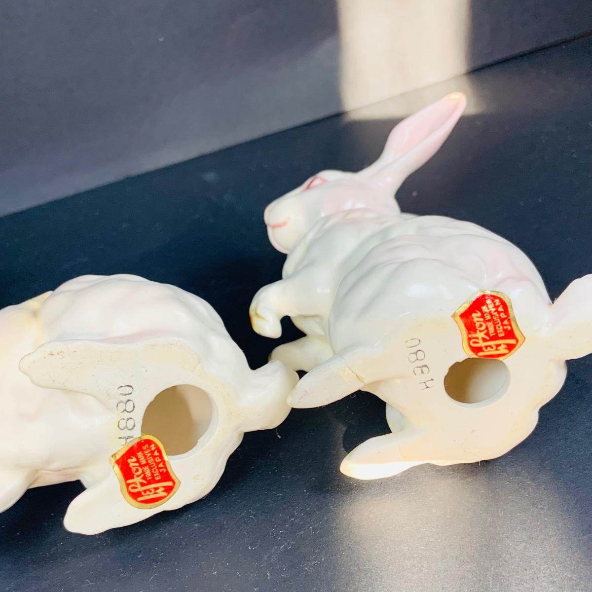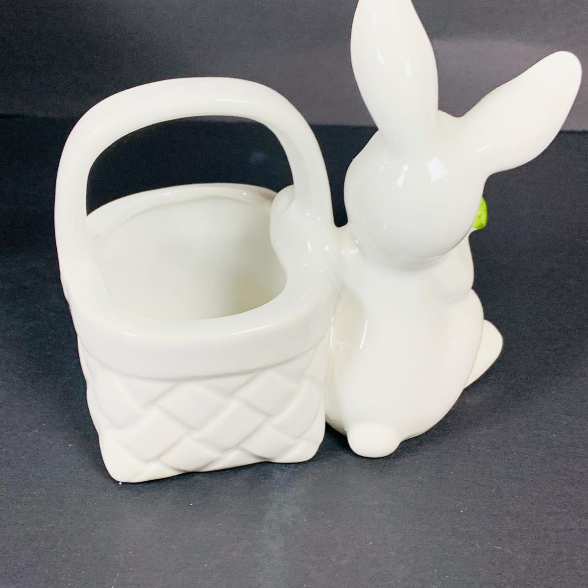 LOT 42: Lefton Rabbits, Dept 56 Chicks and Wooden Eggs, Fitz and Floyd Rabbit with Basket, Pendelfin Rabbits, Ceramic Baskets, Eggs and More