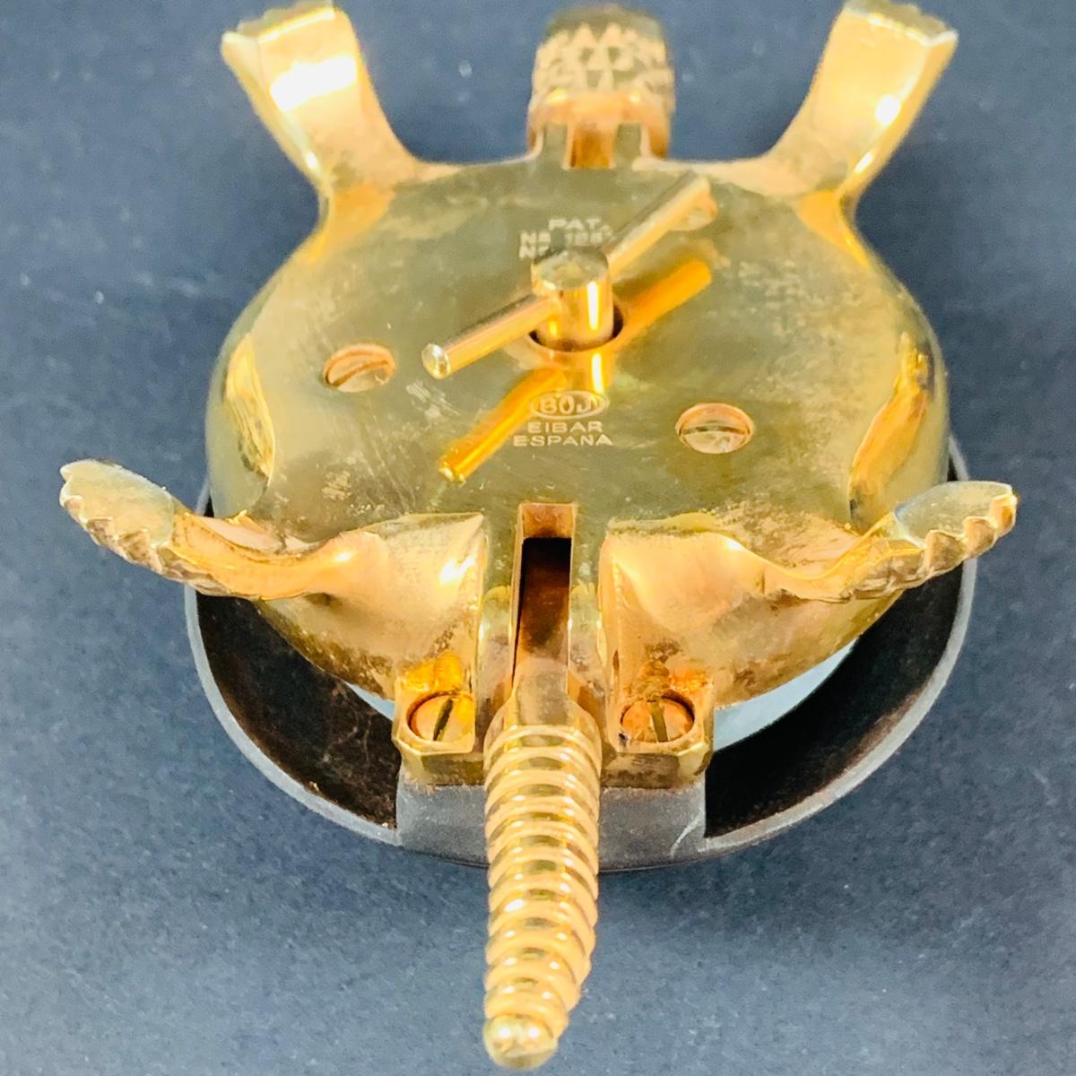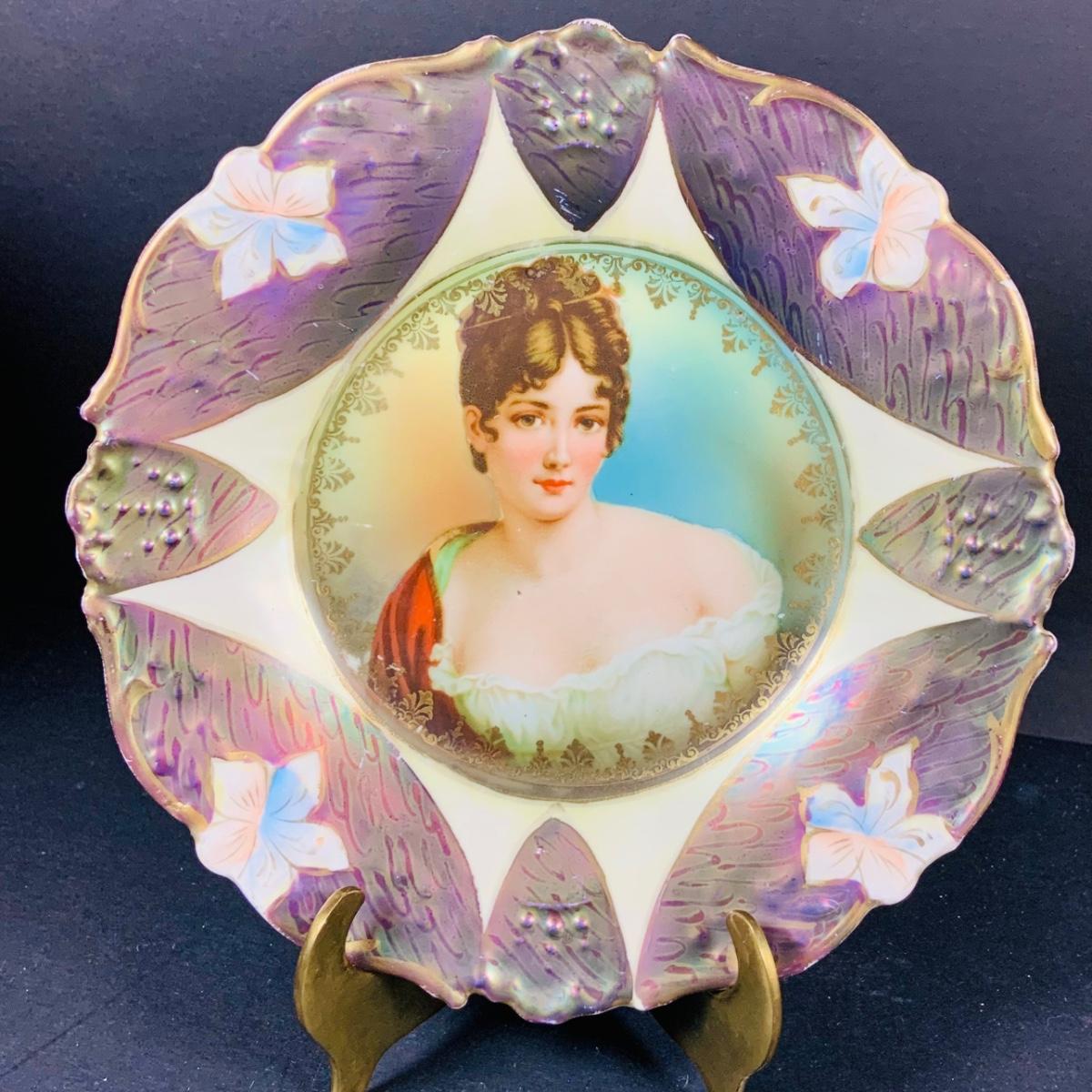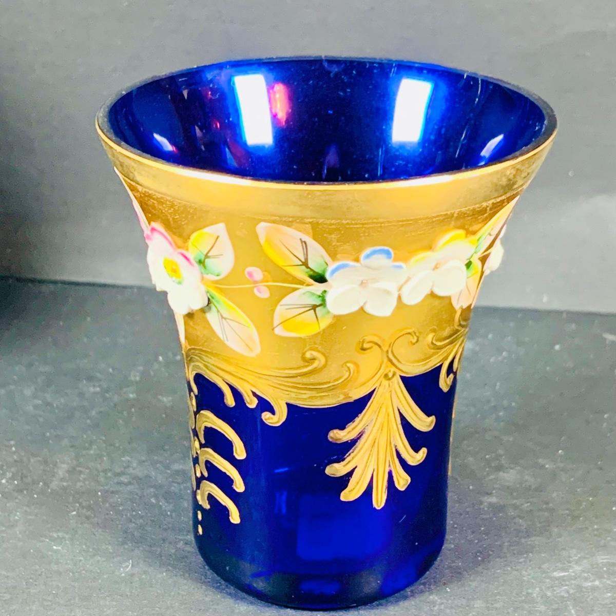 LOT:50: Vintage BOJ Eibar Spanish Brass Turtle Bell, Vintage Cobalt Blue Hand Painted Glass Vase/Glass, Mini Limoges Soup Tureen, Plate Portrait and Floral Brass Vase