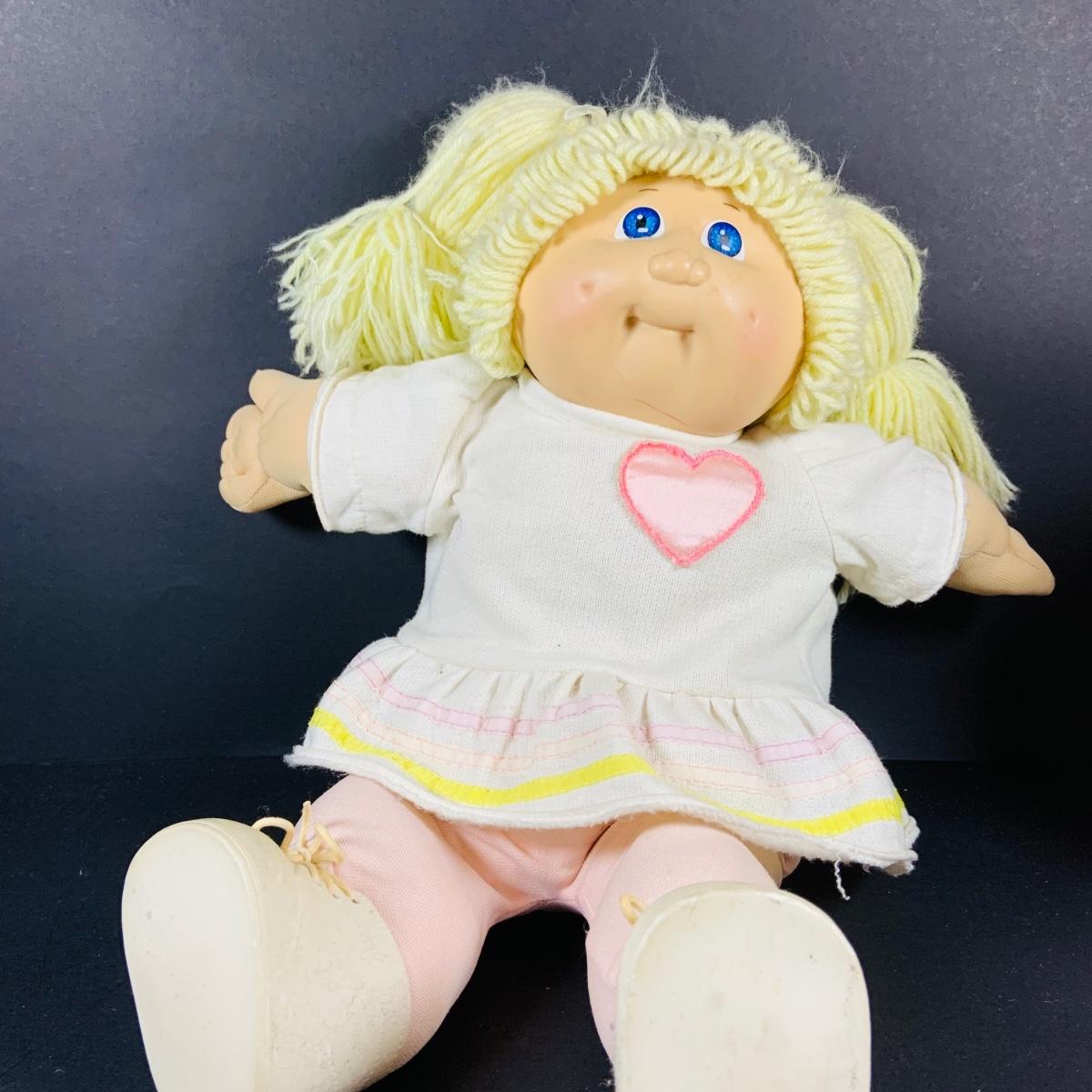 LOT:51: Cabbage Patch and More - 1982 Coleco Cabbage Patch Doll, (4) Cabbage Patch Kids Ceramic Figures, (4) Cabbage Patch Kids Plastic Toys a Ceramic Kelvin's Kewpie Figurine