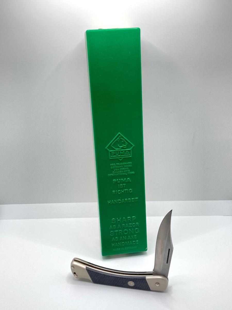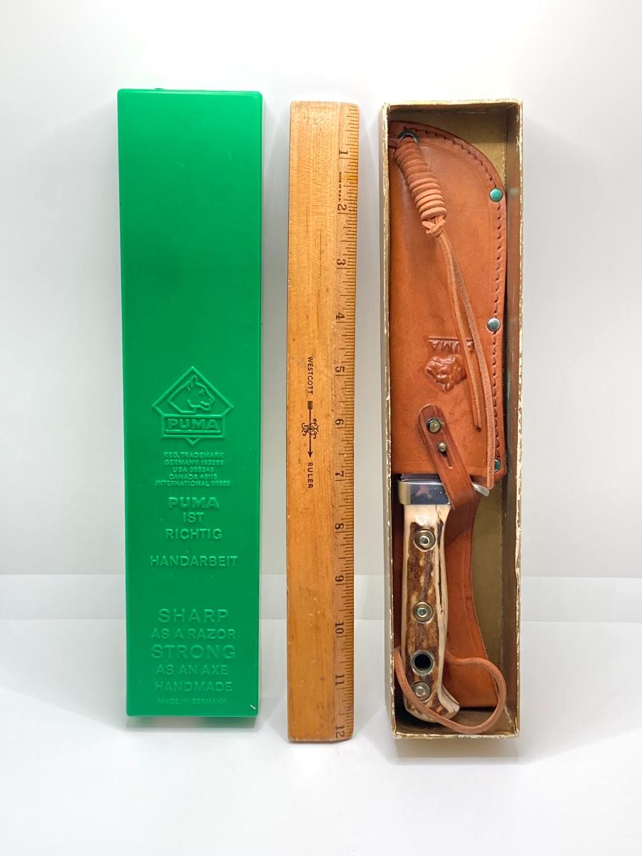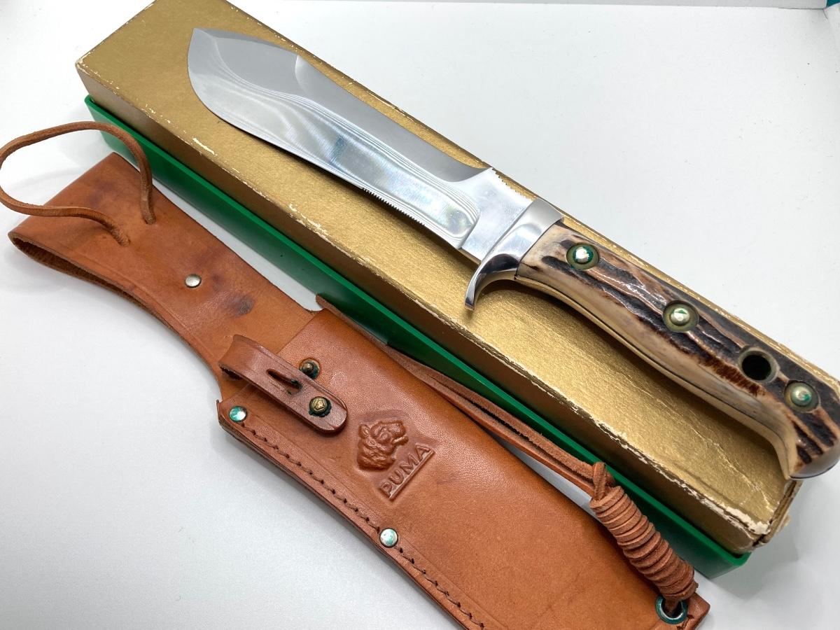 LOT 58: Pair of German Puma Knives - 6377 White Hunter with Leather Sheath and Puma 270 Lock Back Folding
