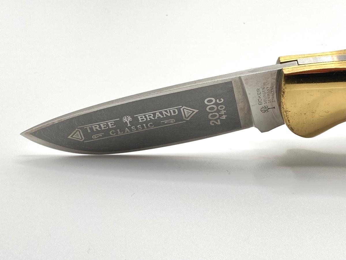 LOT 62: Boker Soligen Germany Tree Brand Classic 2000 440C Folding Knife with Leather Sheath