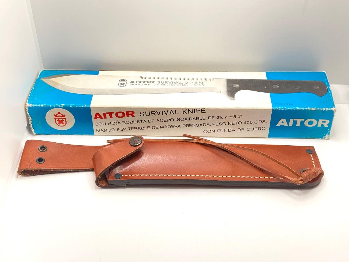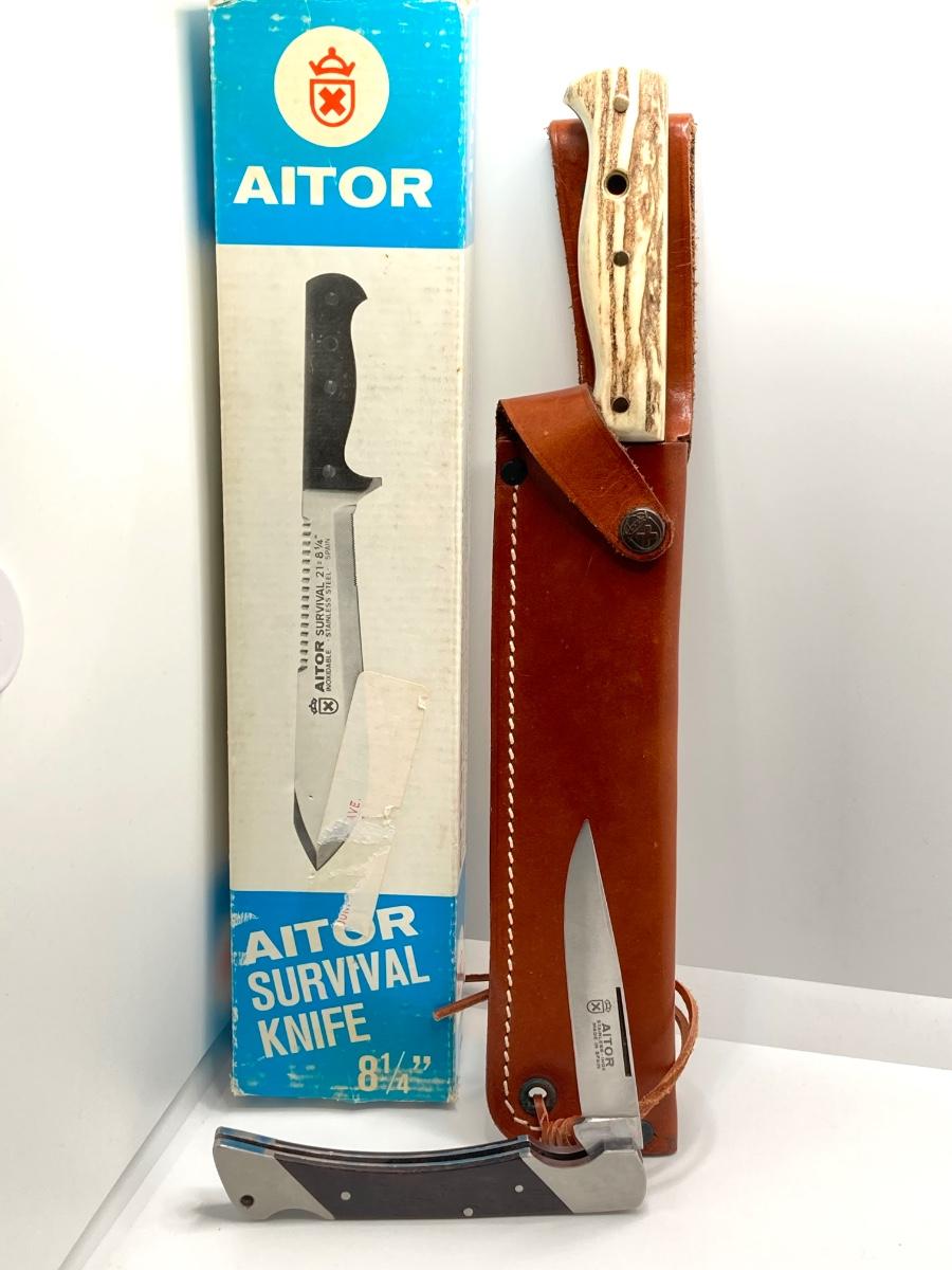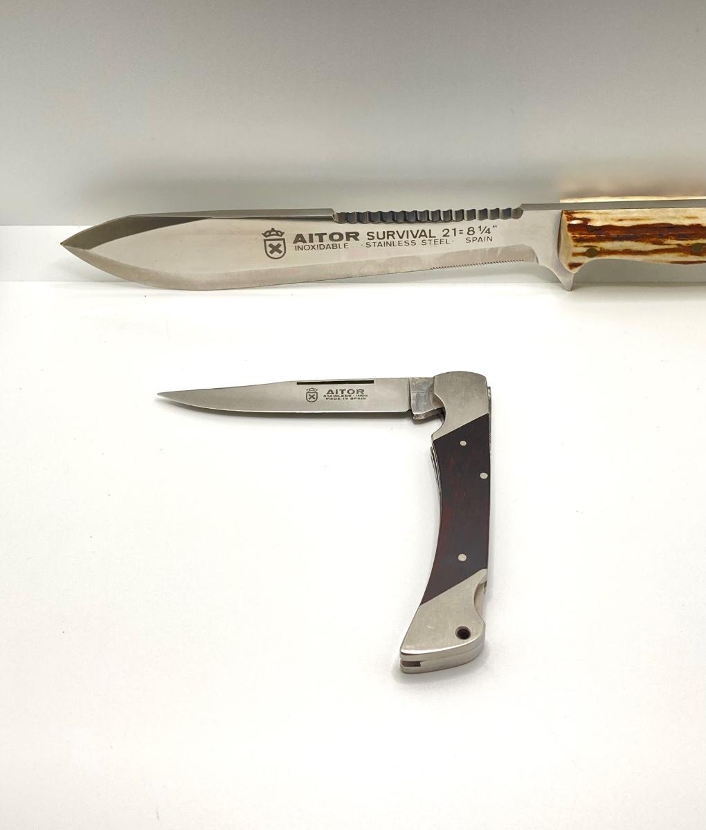 LOT 63: Pair of Aitor Knives - Survival with Leather Sheath and Original Box and Lock Back Folding