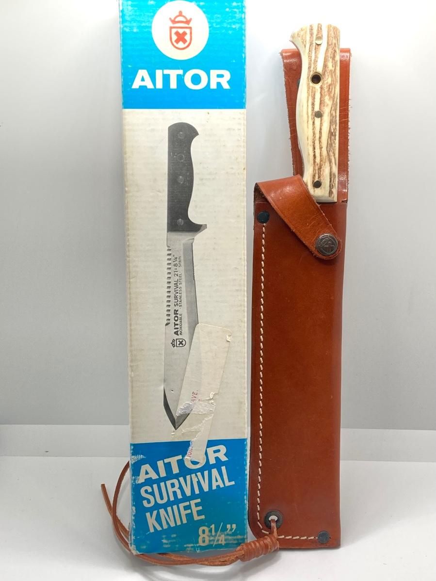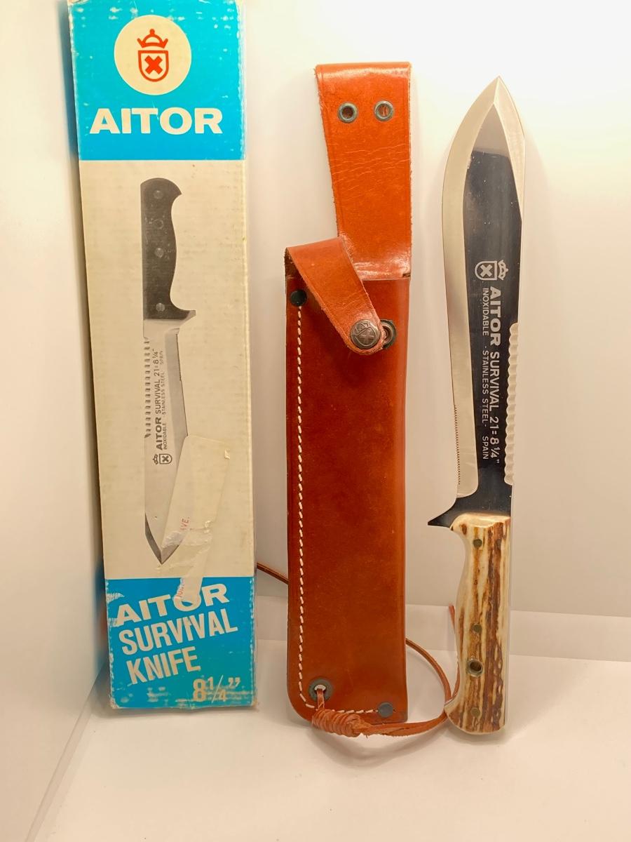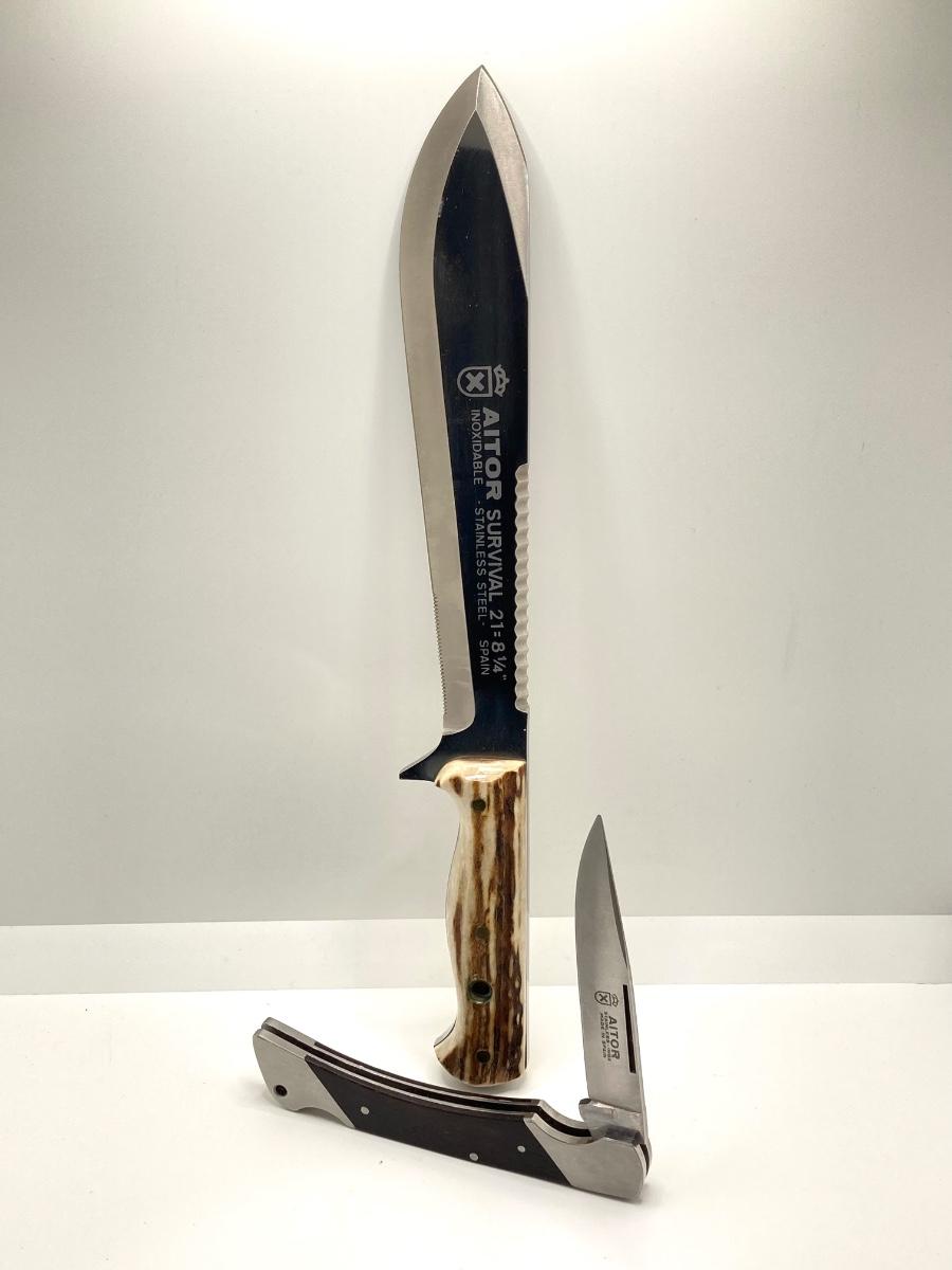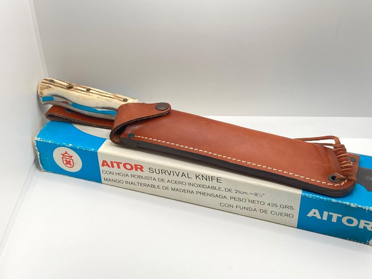 LOT 63: Pair of Aitor Knives - Survival with Leather Sheath and Original Box and Lock Back Folding