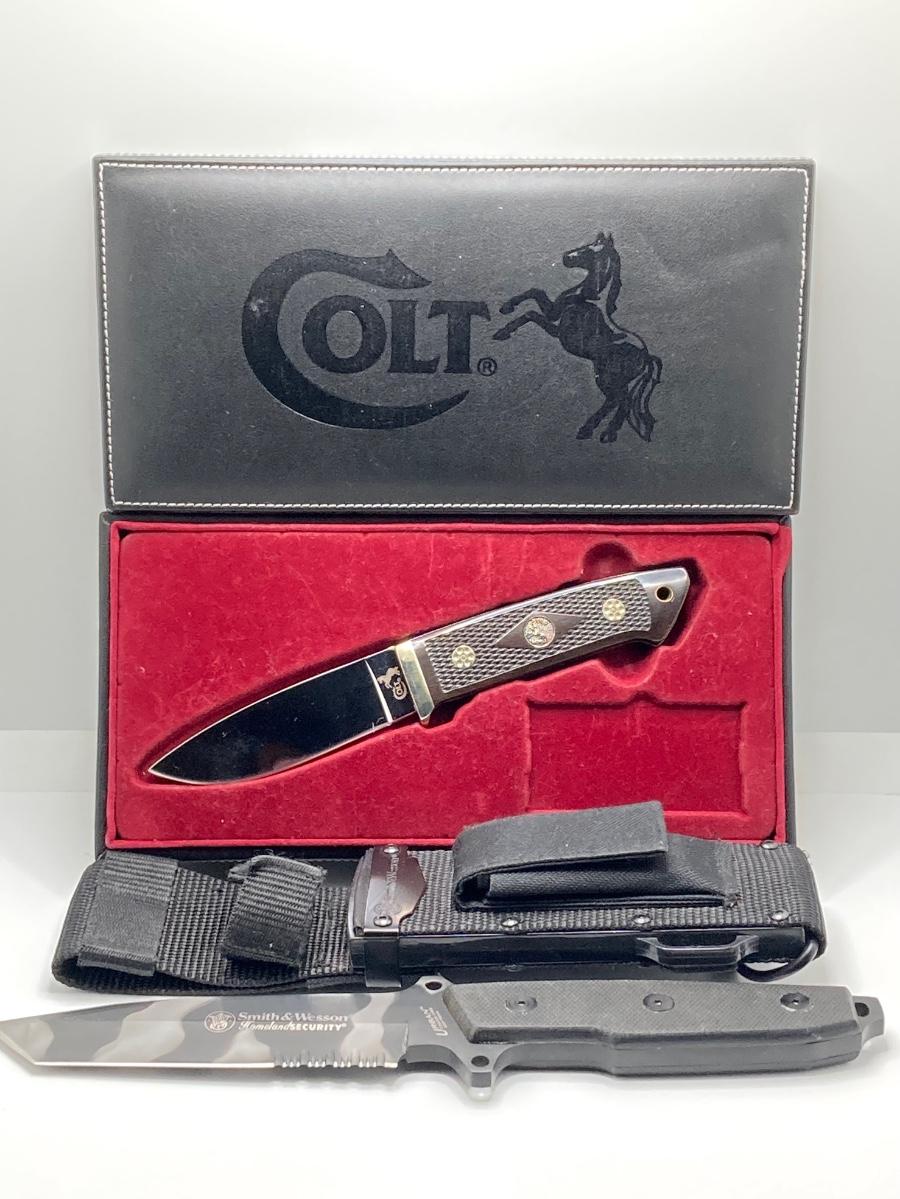 LOT 64: Colt CT223 Knife in Box and Smith & Wesson Homeland Security Knife (First Production Run Designed by Morgan A Taylor) with Sheath