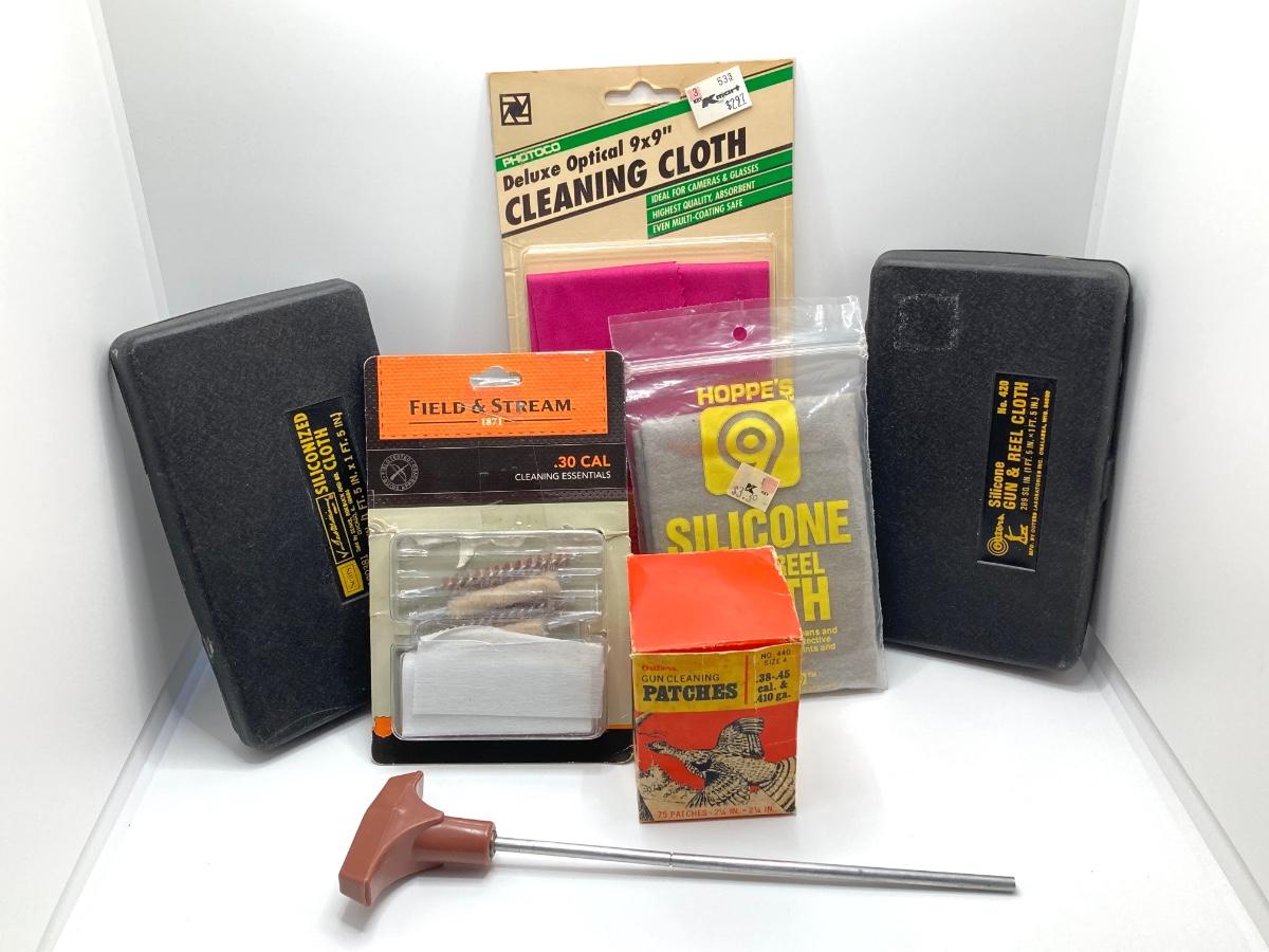 LOT 73: Firearm Care Collection - Cloths, Rods, Patches, Master Locks and More
