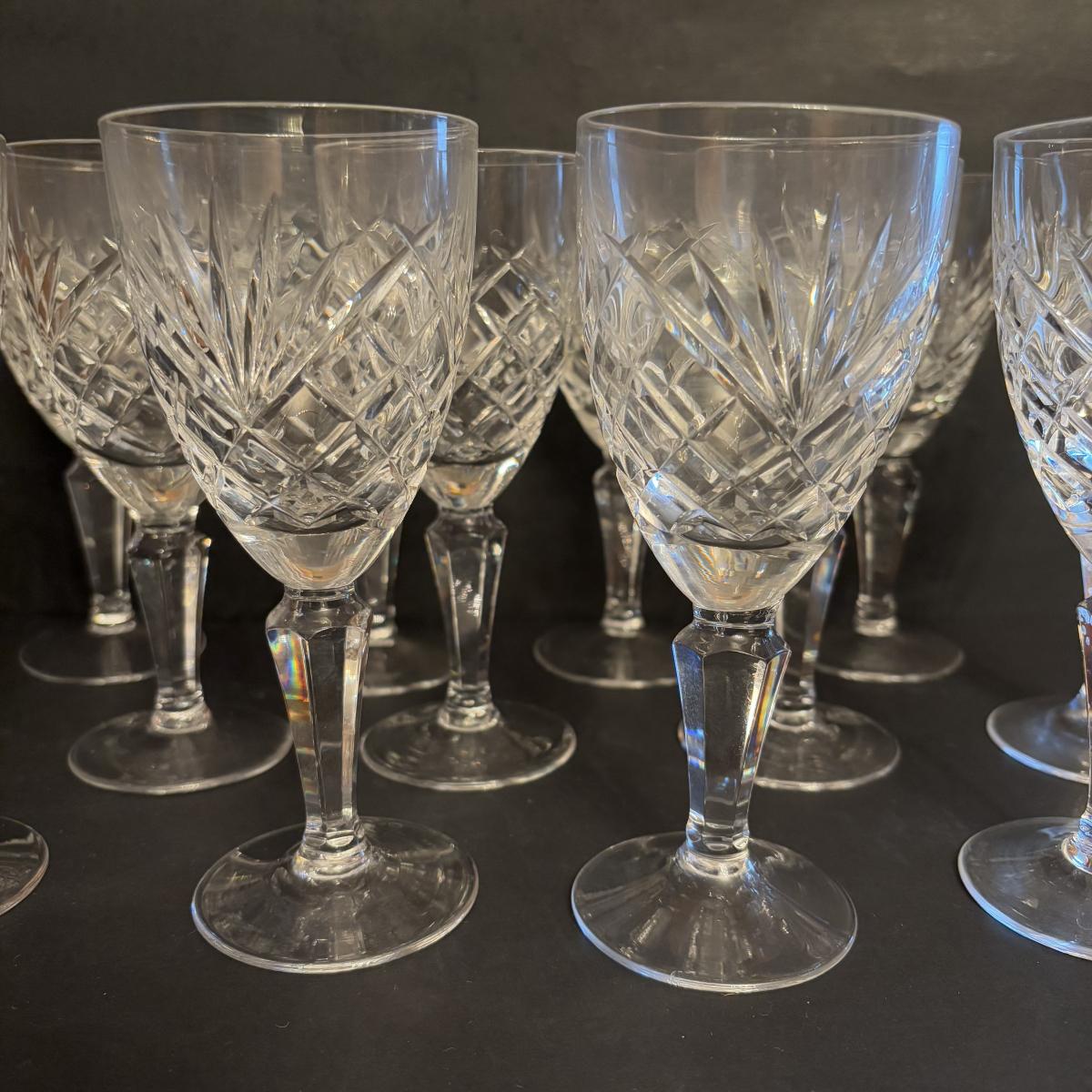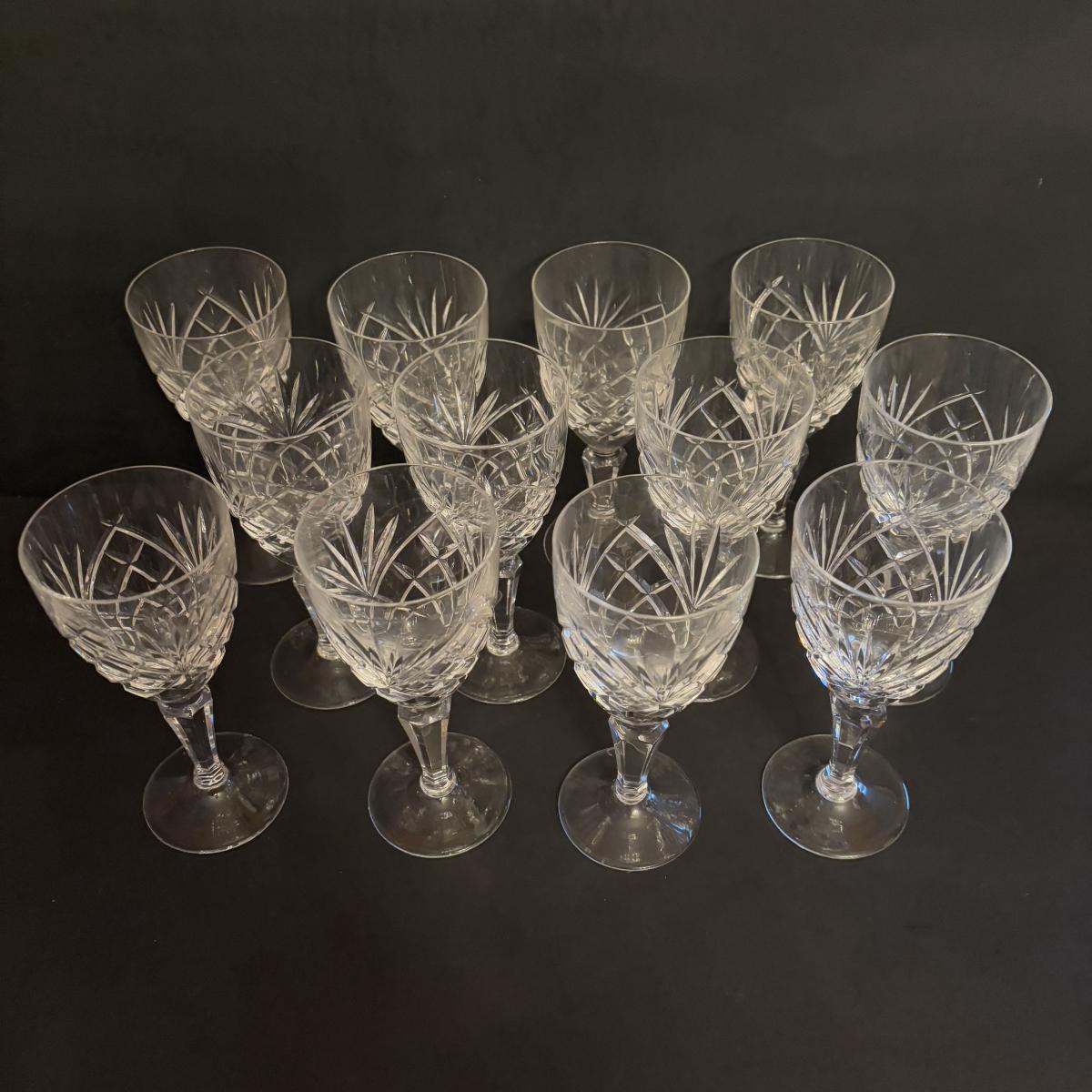 LOT 90: Exquisite Set of 12 Galway Irish Crystal Ashford 6 3/4" Wine Glasses w/Plain Base