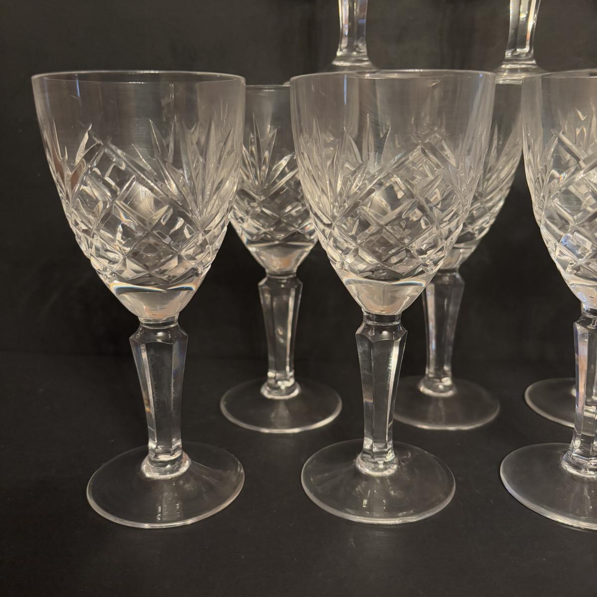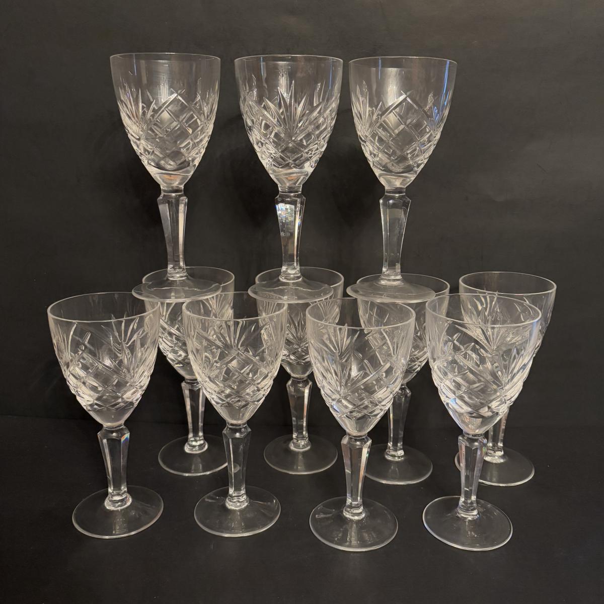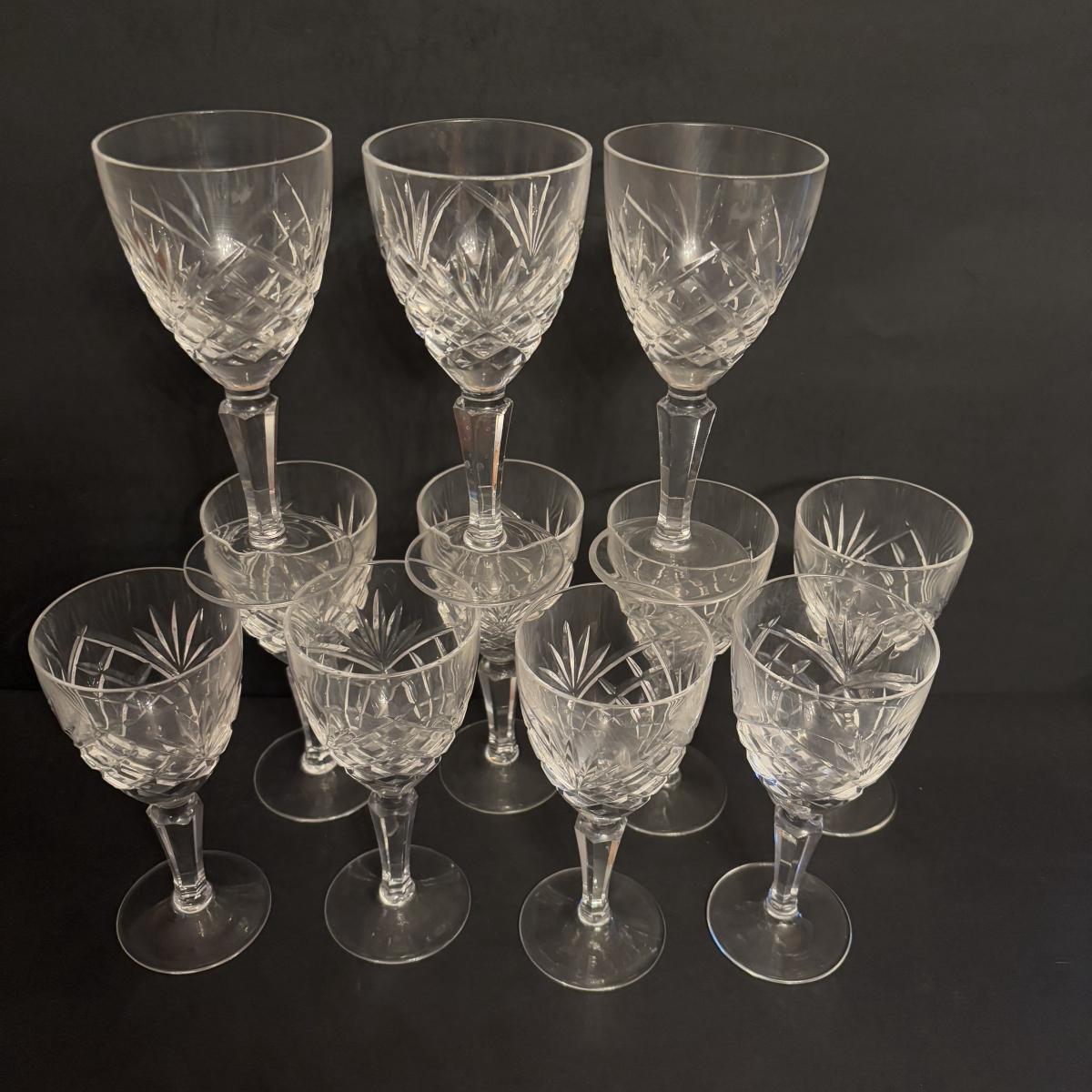 LOT 91: Exquisite Set of 11 Galway Irish Crystal Ashford 6" Wine Glasses w/Plain Base