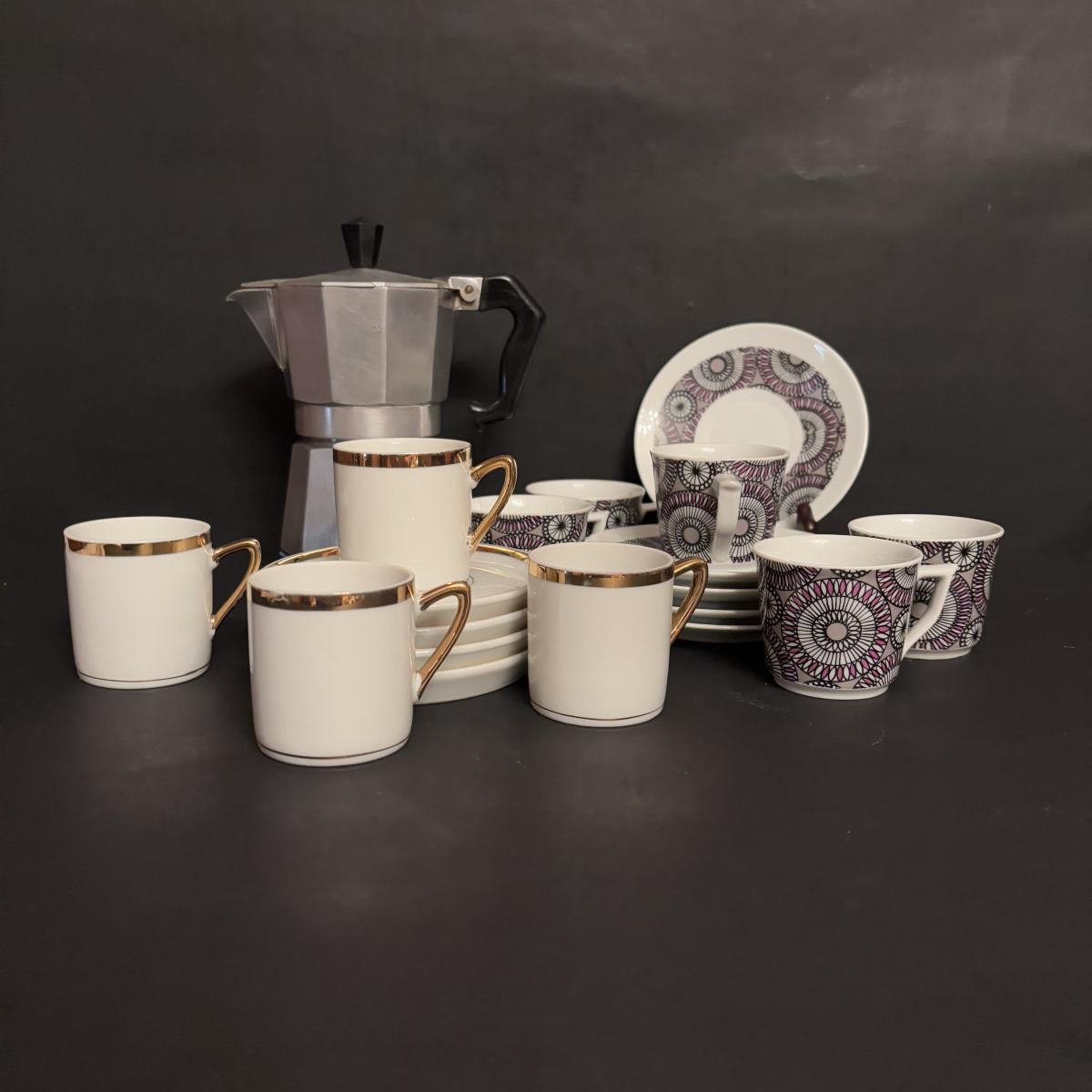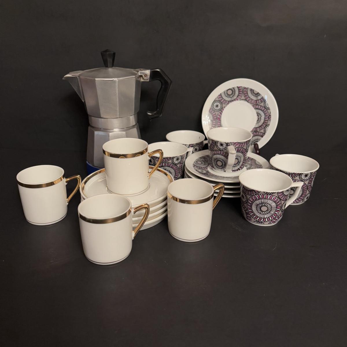 LOT 96: Vintage Primula Express Stovetop Espresso Coffee Maker & Demitasse/Espresso Cups
