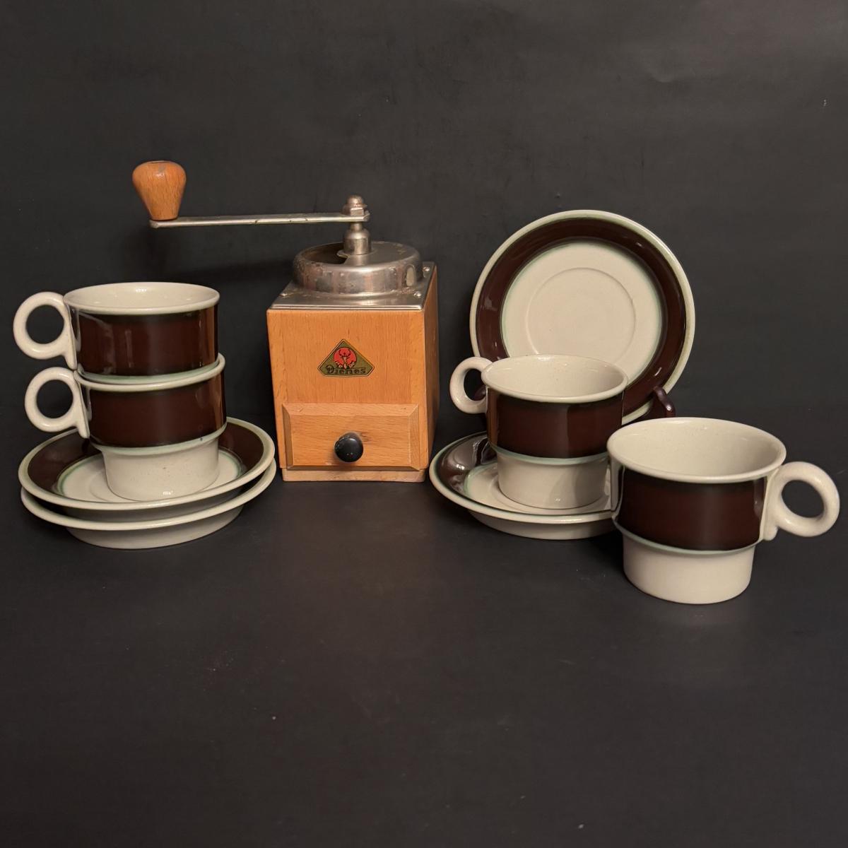 LOT 97: Hogans Keramik, Sweden Stoneware Expresso Mugs & Vintage PeDe Dienes German Coffee Grinder
