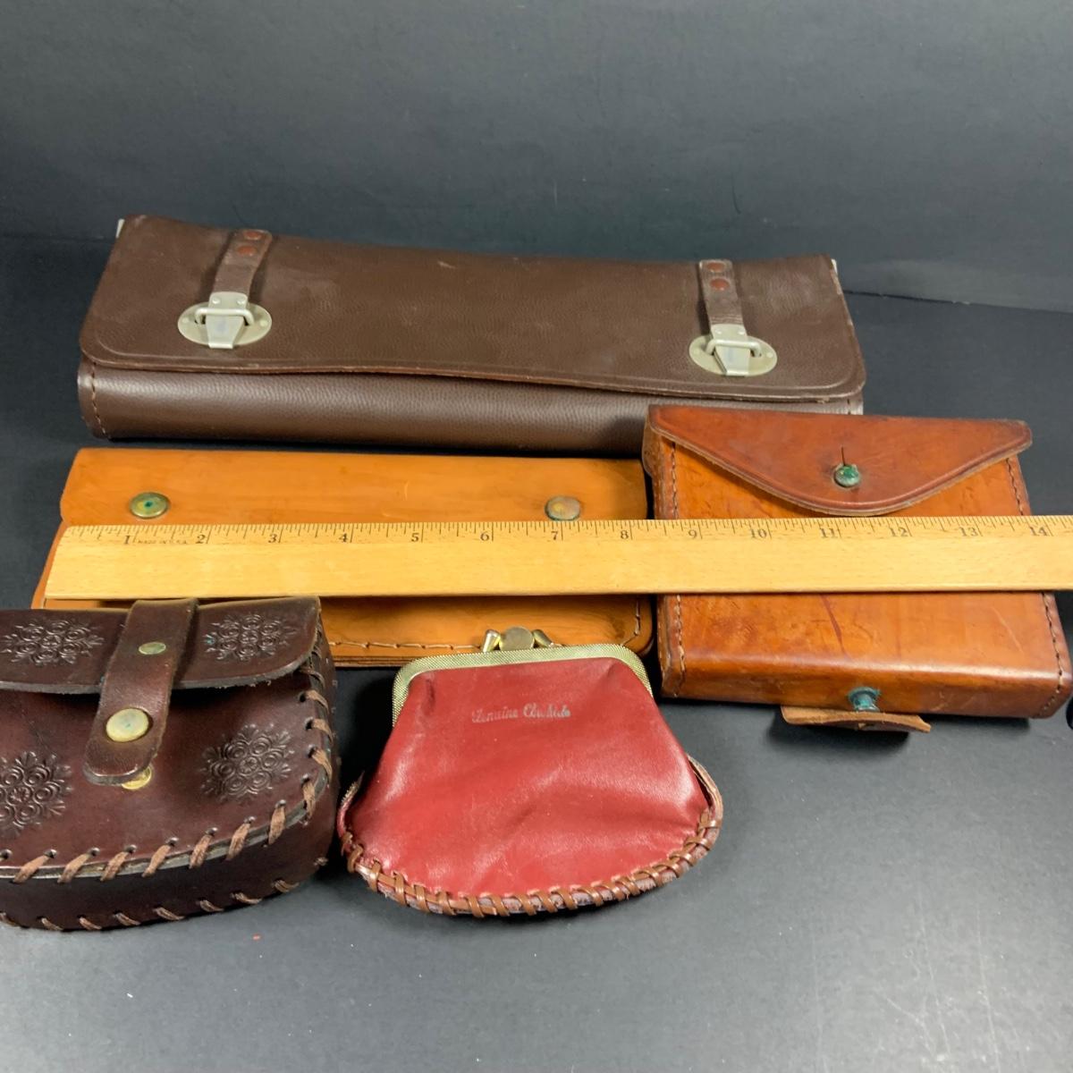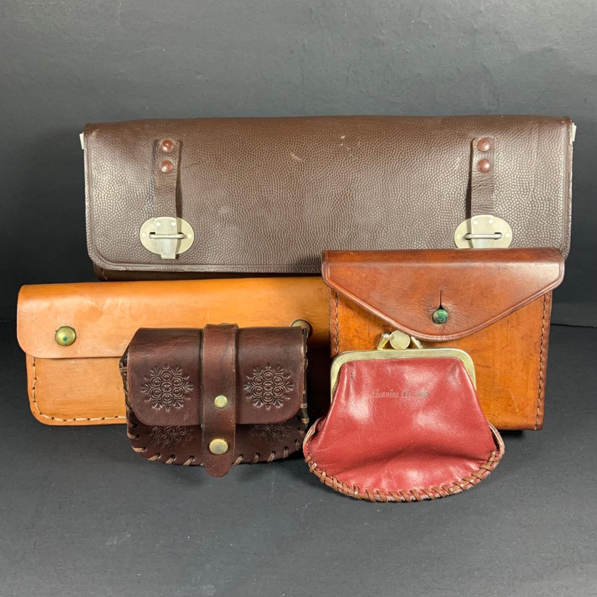 LOT:193: Collection of Hand Crafted Leather Pouches, Purses , Cases and More
