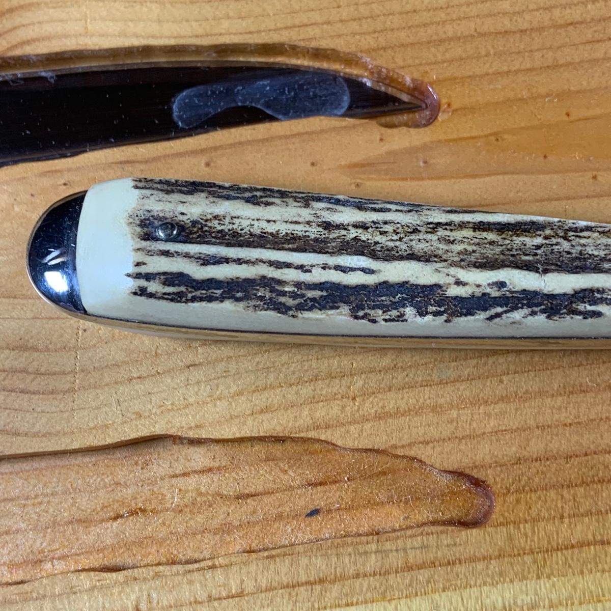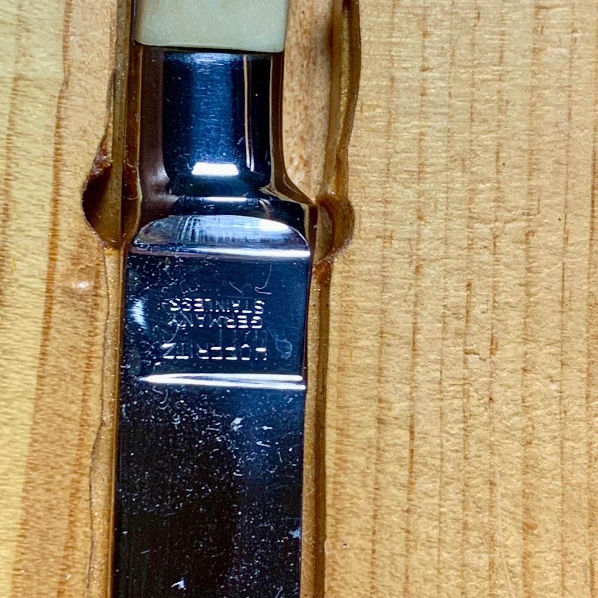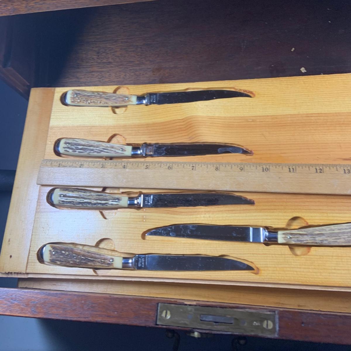 LOT:201: Wooden Chest Full of Hoffritz Cutlery Including Stag Handle Knives and More