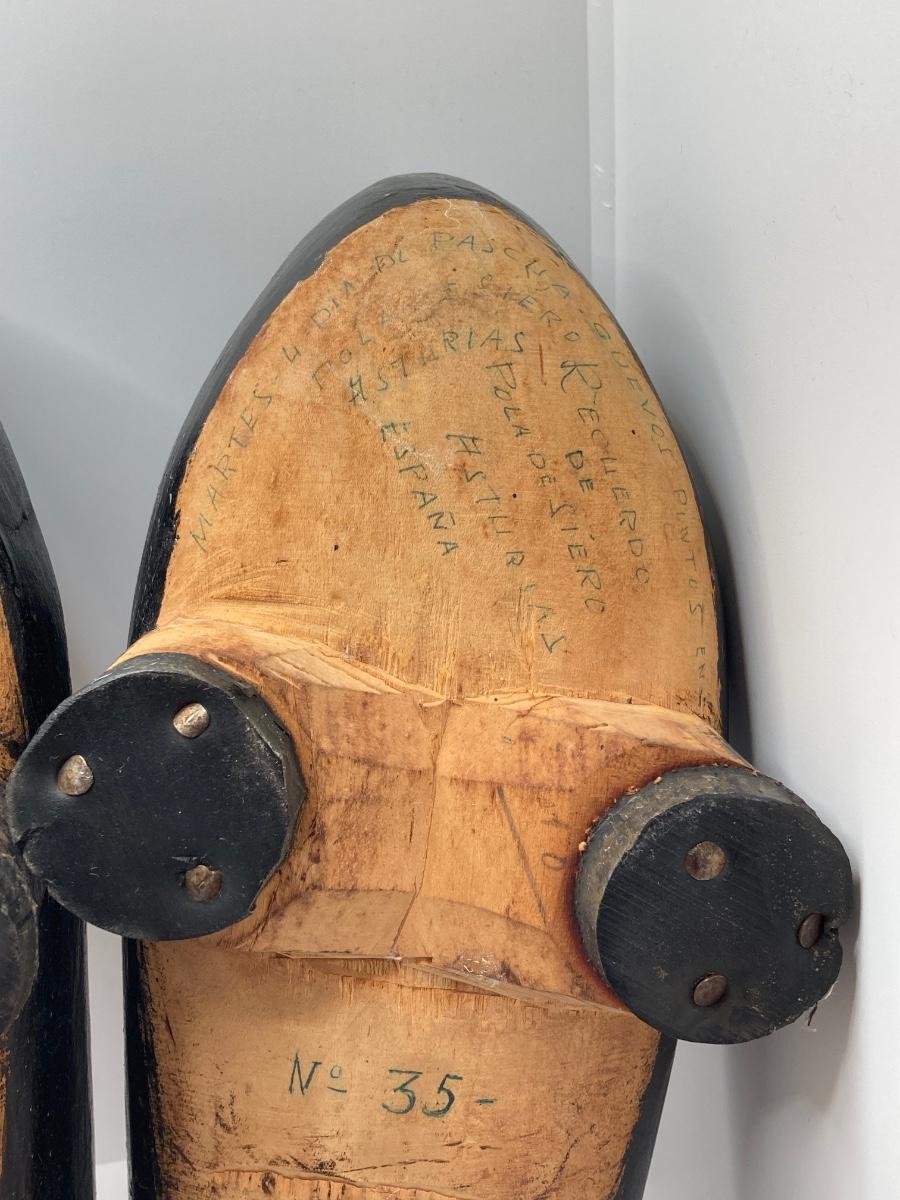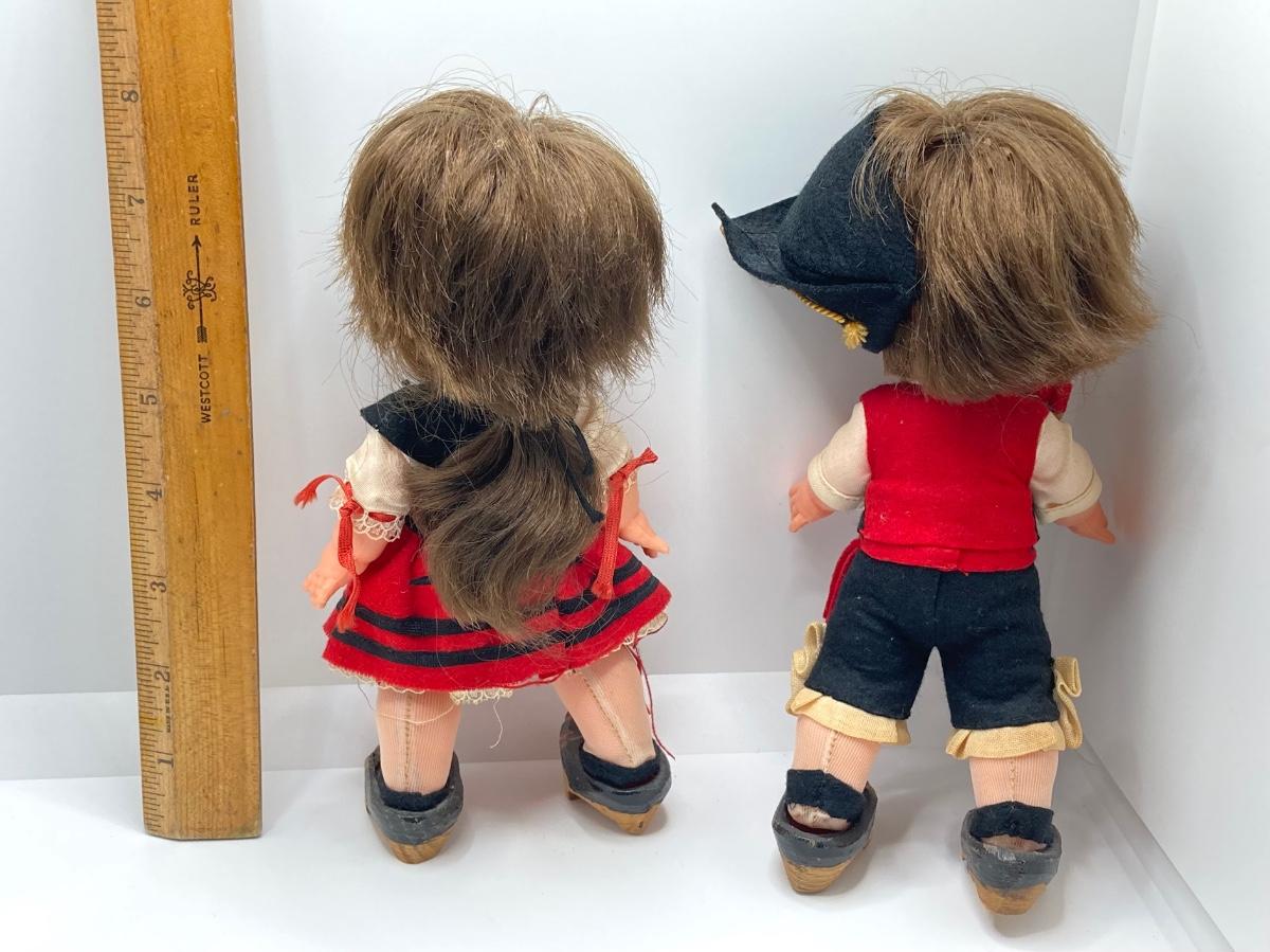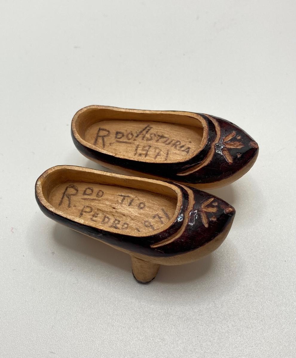 LOT 244: Vintage Wooden Shoe Folk Art Collection - Two Pair of Hand Crafted and Adorable Spanish Dolls