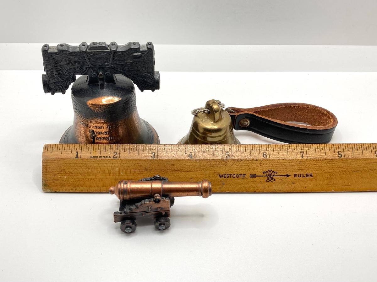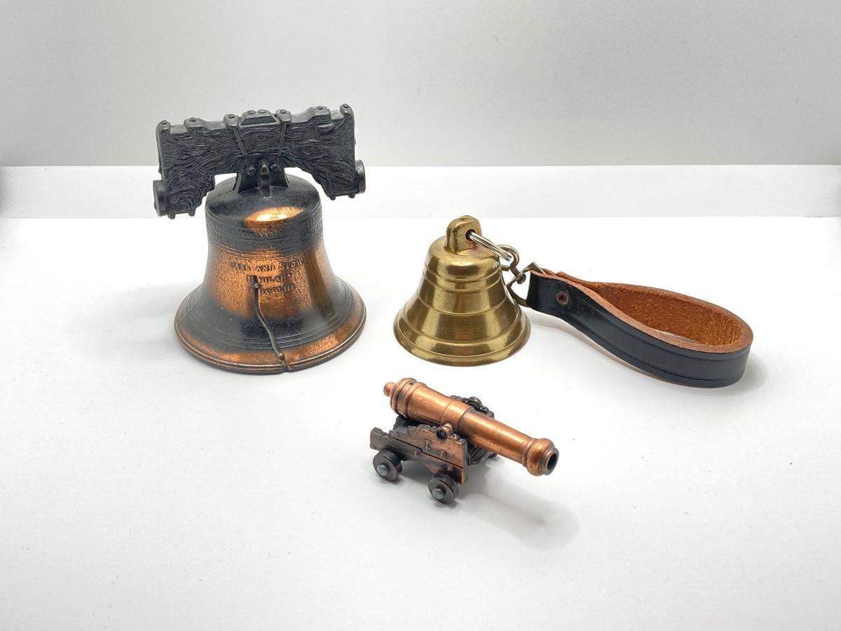 LOT 246: Liberty Bell Collection - Pair of Brass Bookends with Bicentennial Bells and More