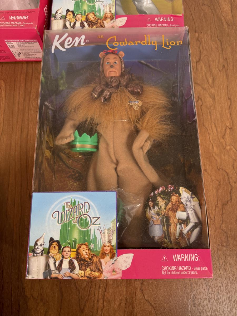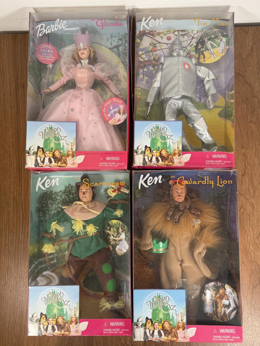 LOT 7A: 1999 Mattel Wizard of Oz Barbie & Kens - Glinda, Tin Man, Scarecrow & Cowardly Lion