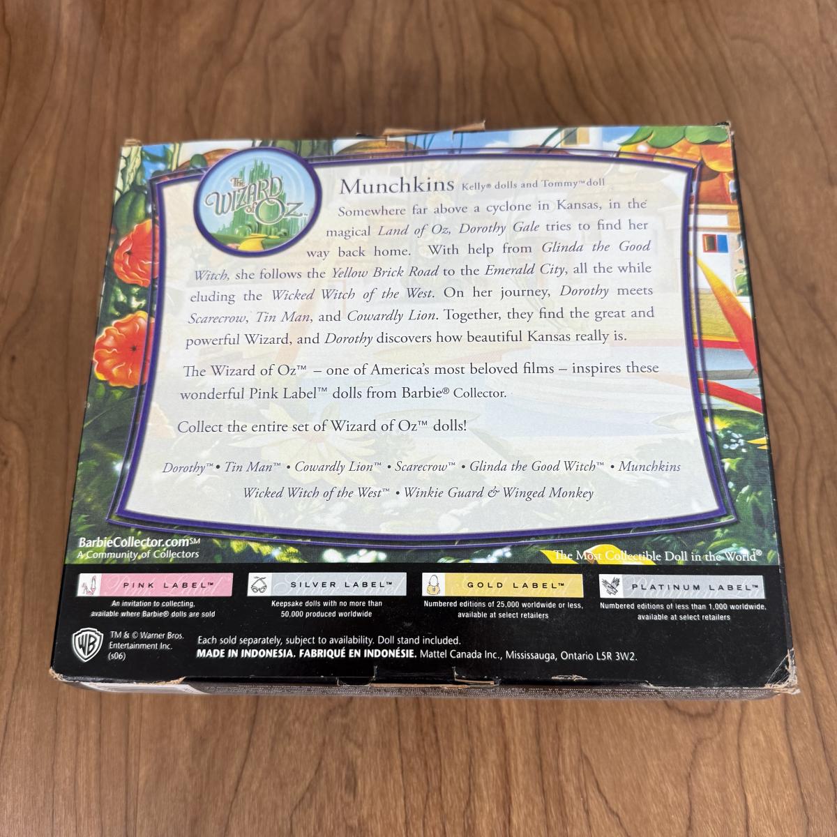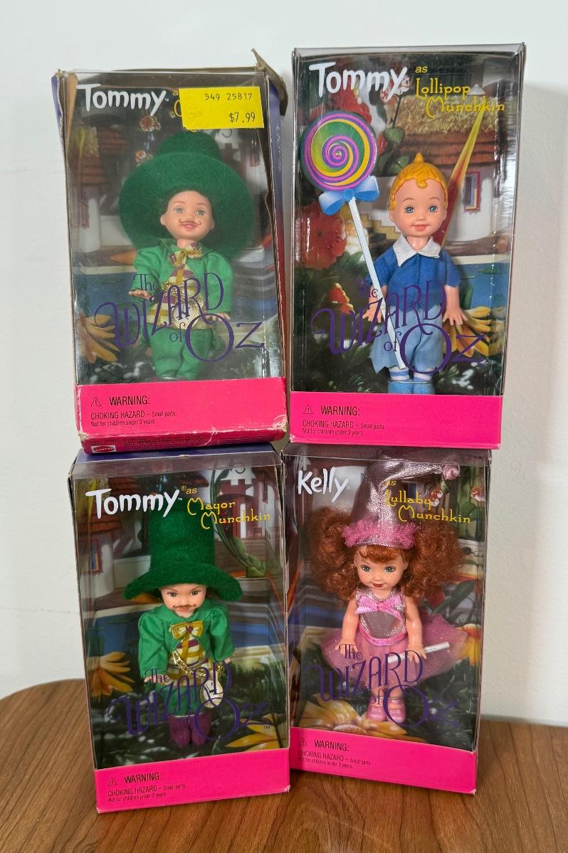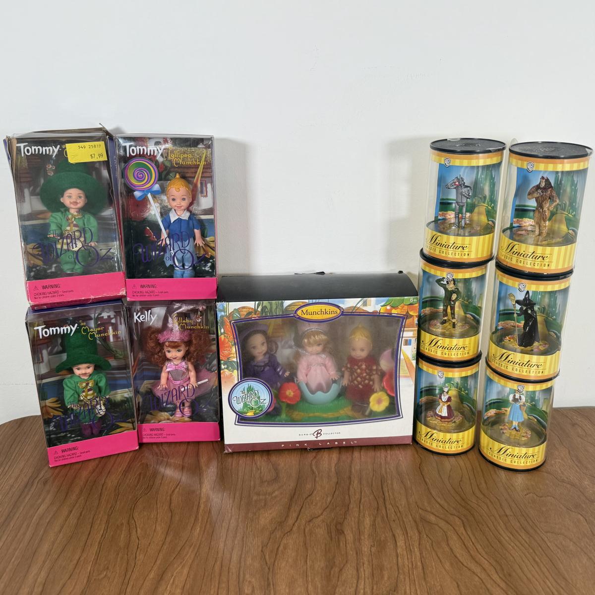 LOT 8A: 2006 Mattel Barbie Collector Pink Label Wizard of Oz Munchkin Set, Kelly & Tommy as Munchkins NRFB & Warner Brothers Miniature Classic Collection Figures in Boxes