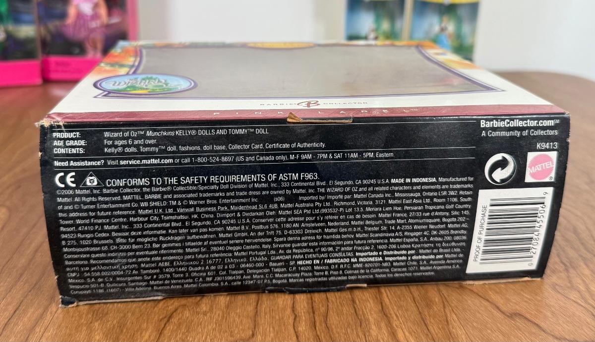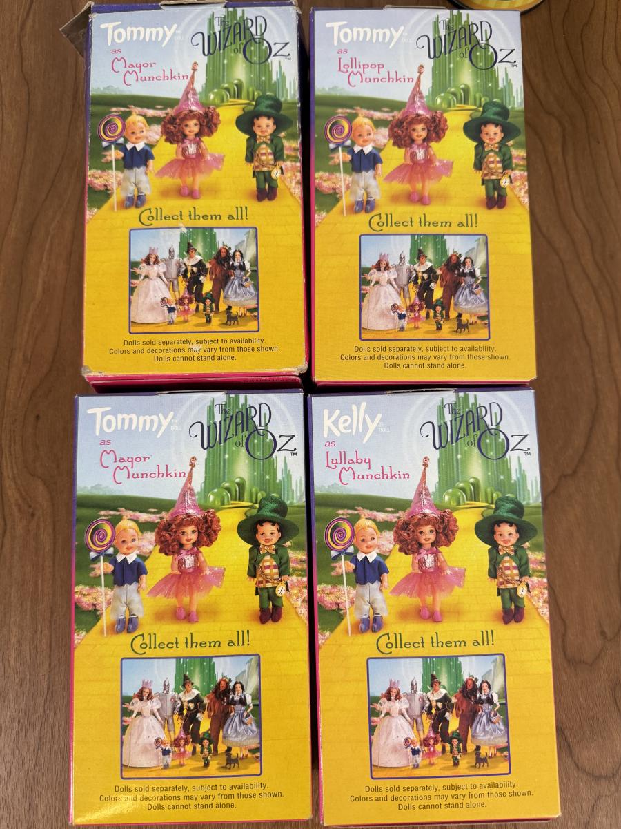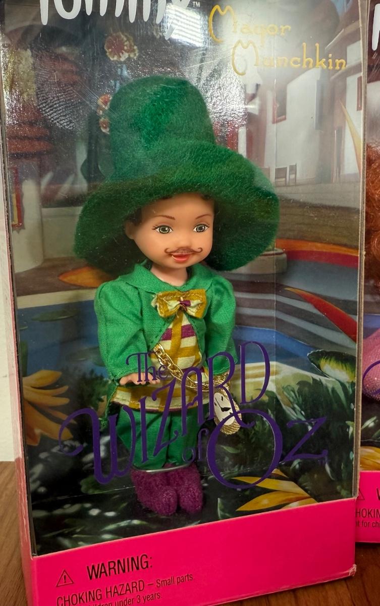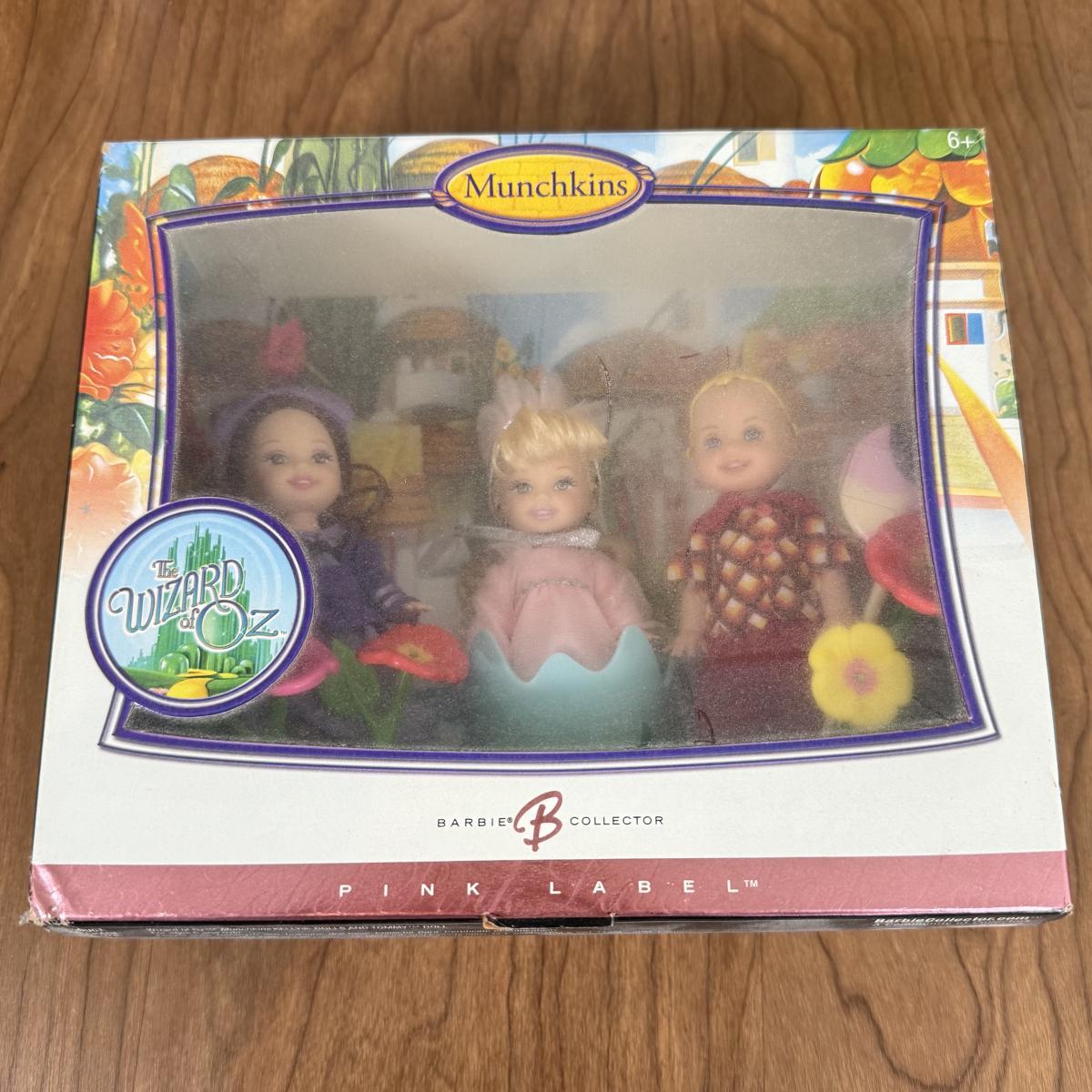 LOT 8A: 2006 Mattel Barbie Collector Pink Label Wizard of Oz Munchkin Set, Kelly & Tommy as Munchkins NRFB & Warner Brothers Miniature Classic Collection Figures in Boxes