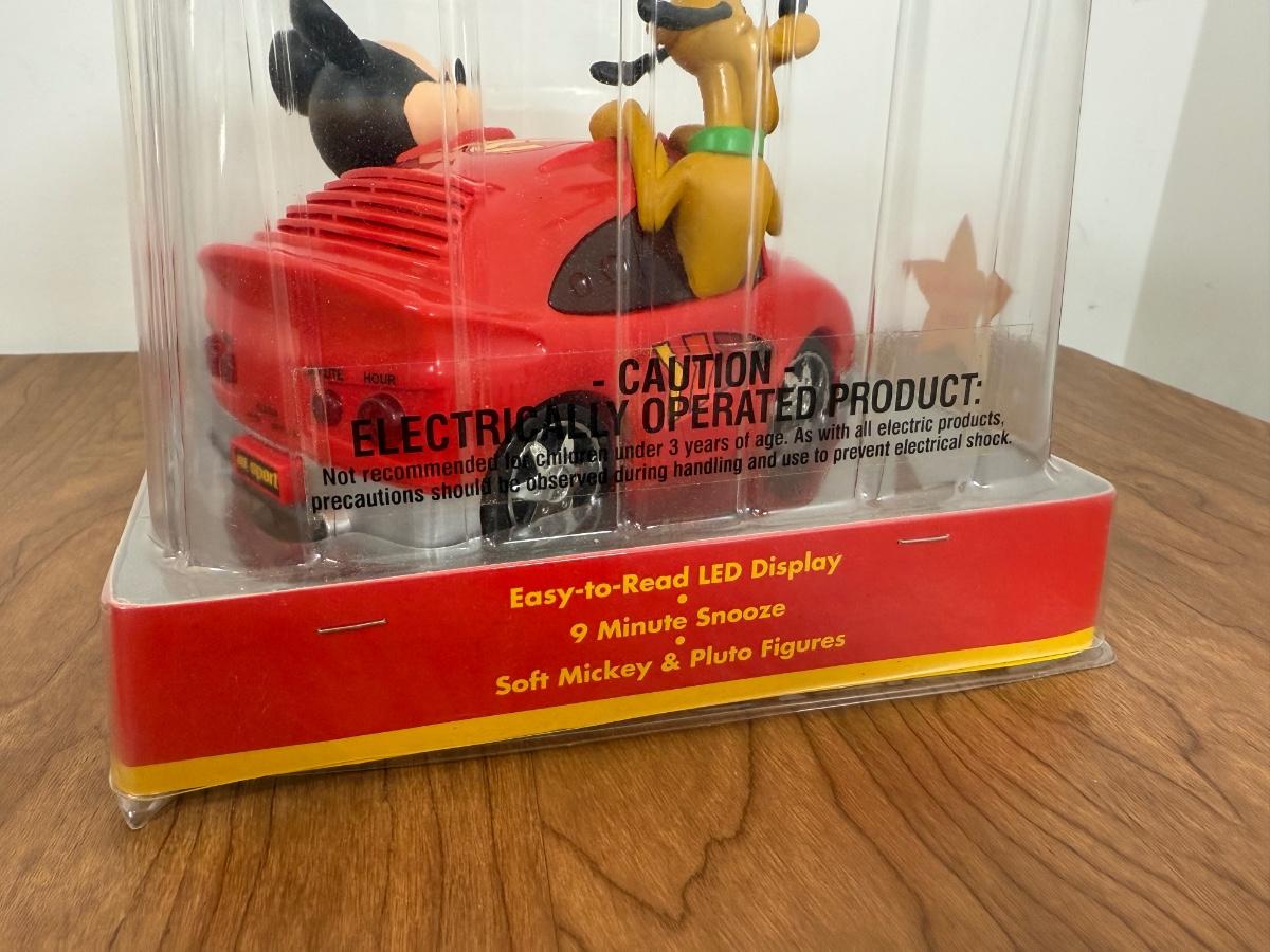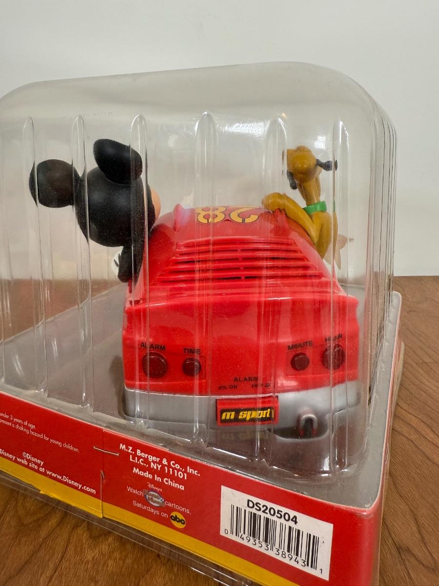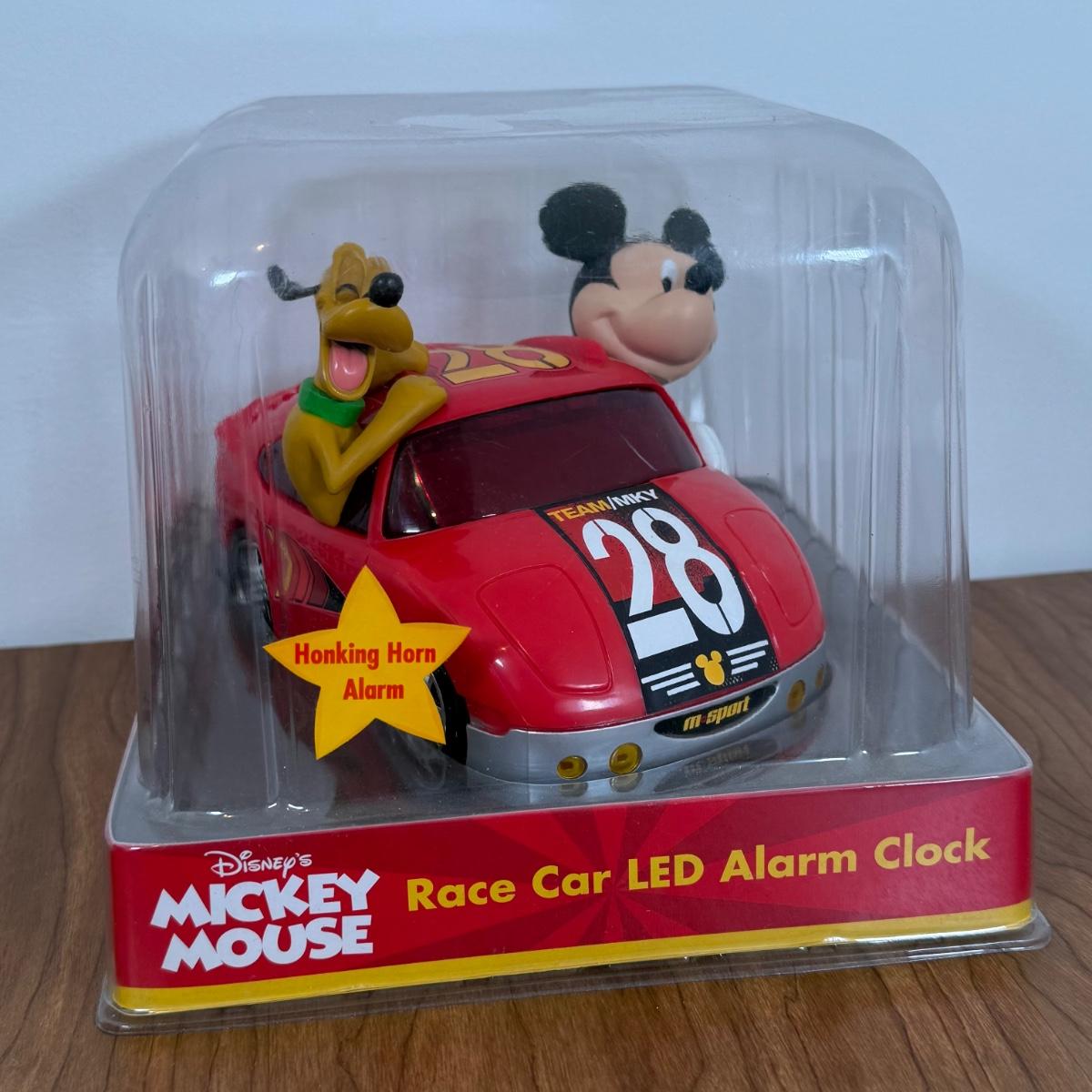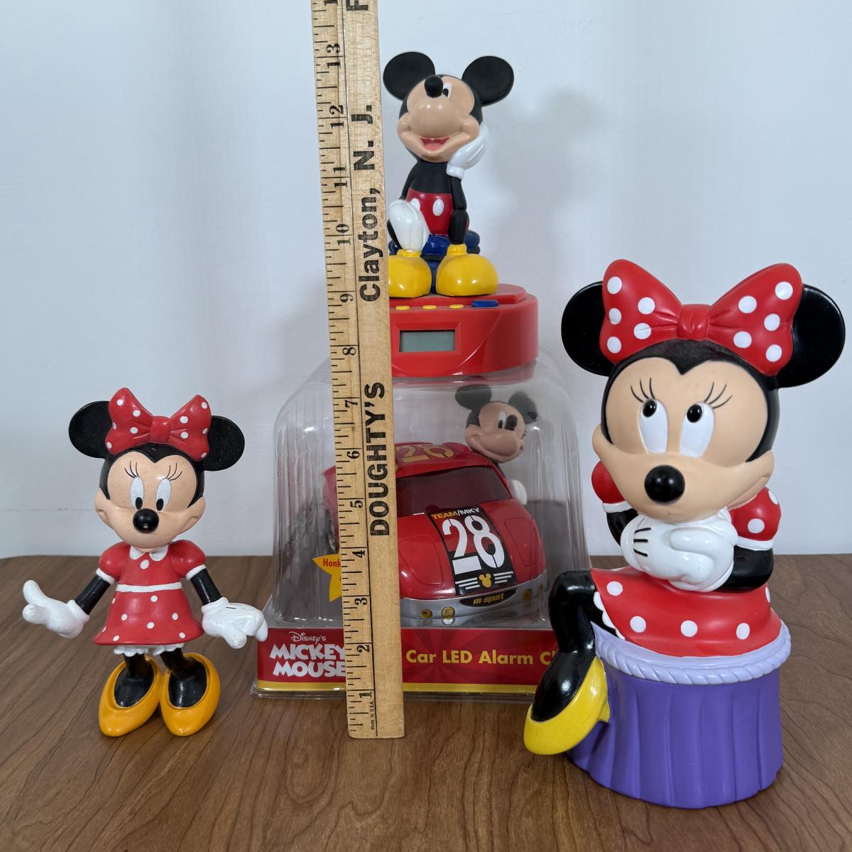 LOT 17A: Disney Mickey Mouse Racecar LED Alarm Clock, Minnie Coin Bank, Bobblehead & Mickey Alarm Clock
