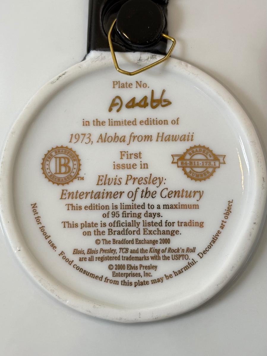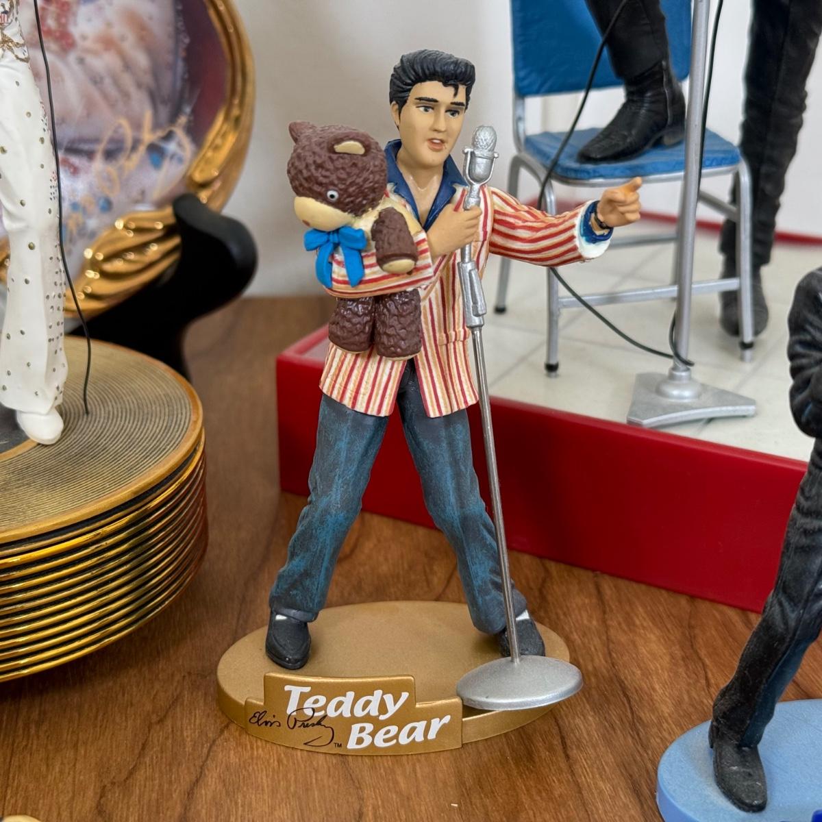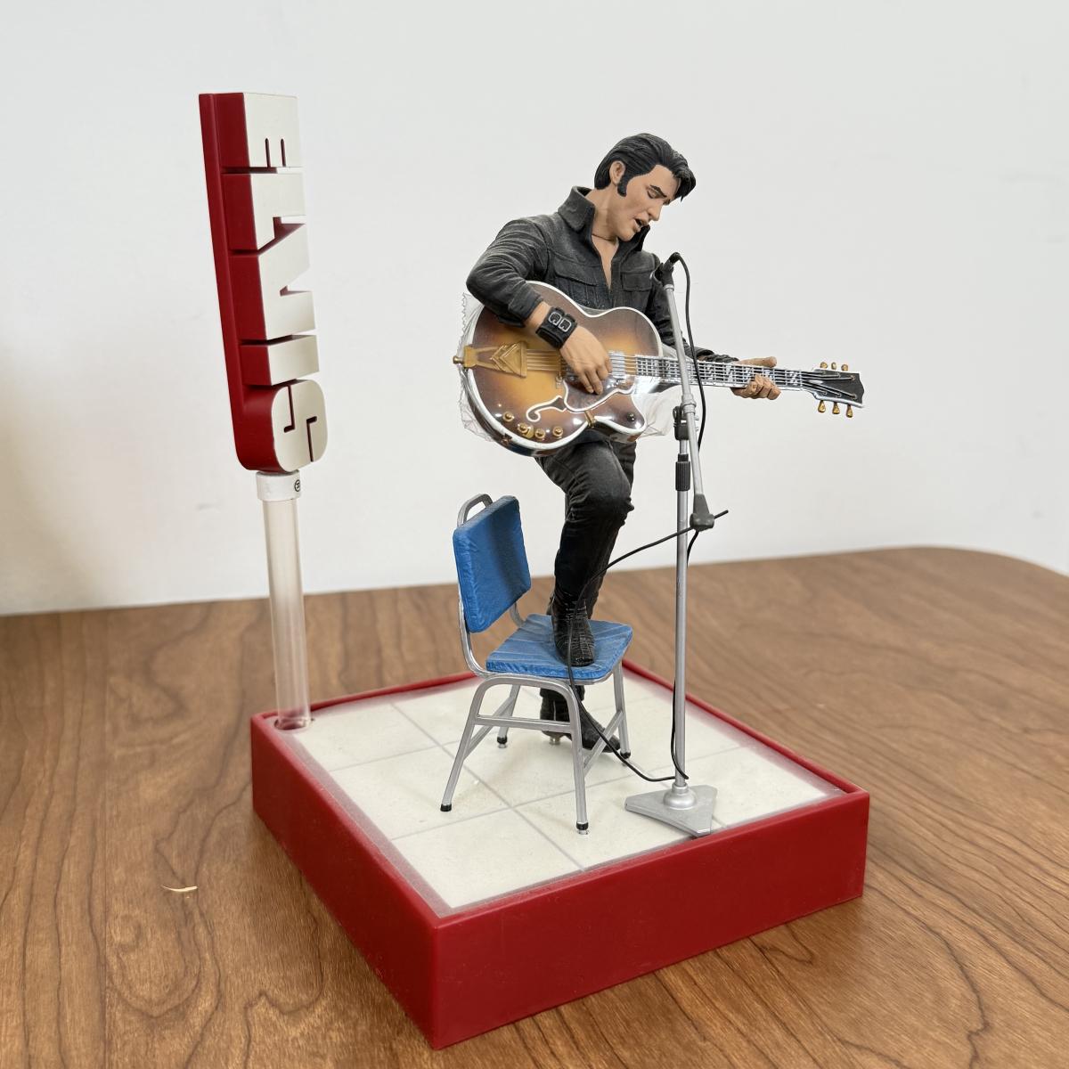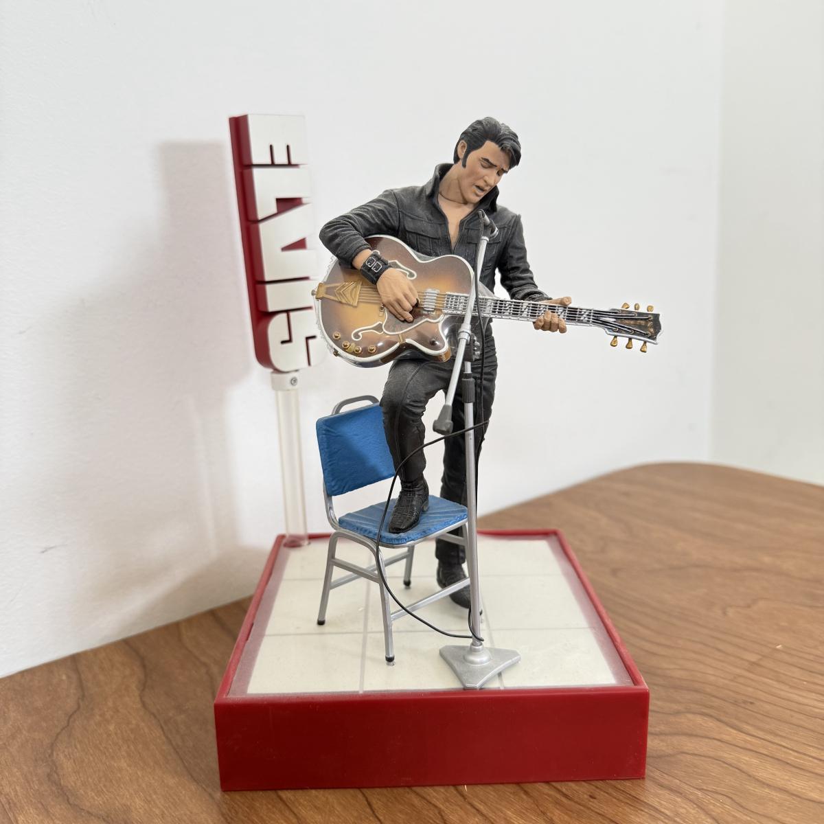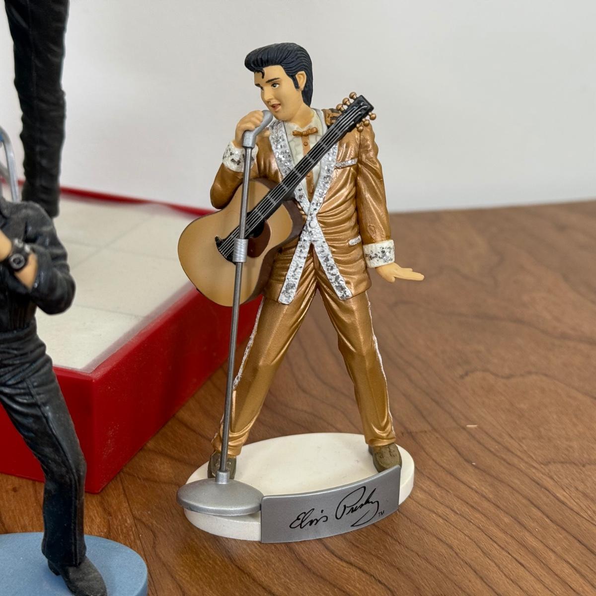 LOT 19A: Elvis Presley Collectibles - Bradford Exchange Aloha from Hawaii Guitar Plate, Ardleigh Elliott Music Box, McFarlan Toys '68 Comeback Special Action Figure & Ornaments