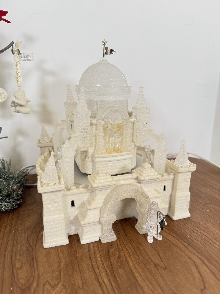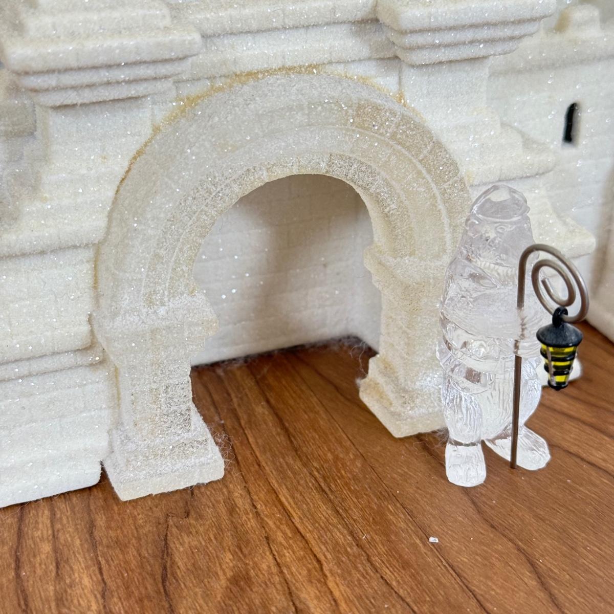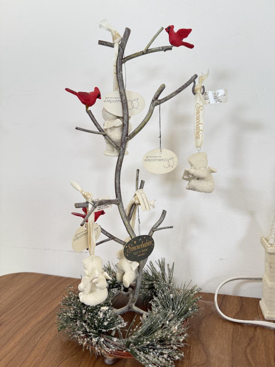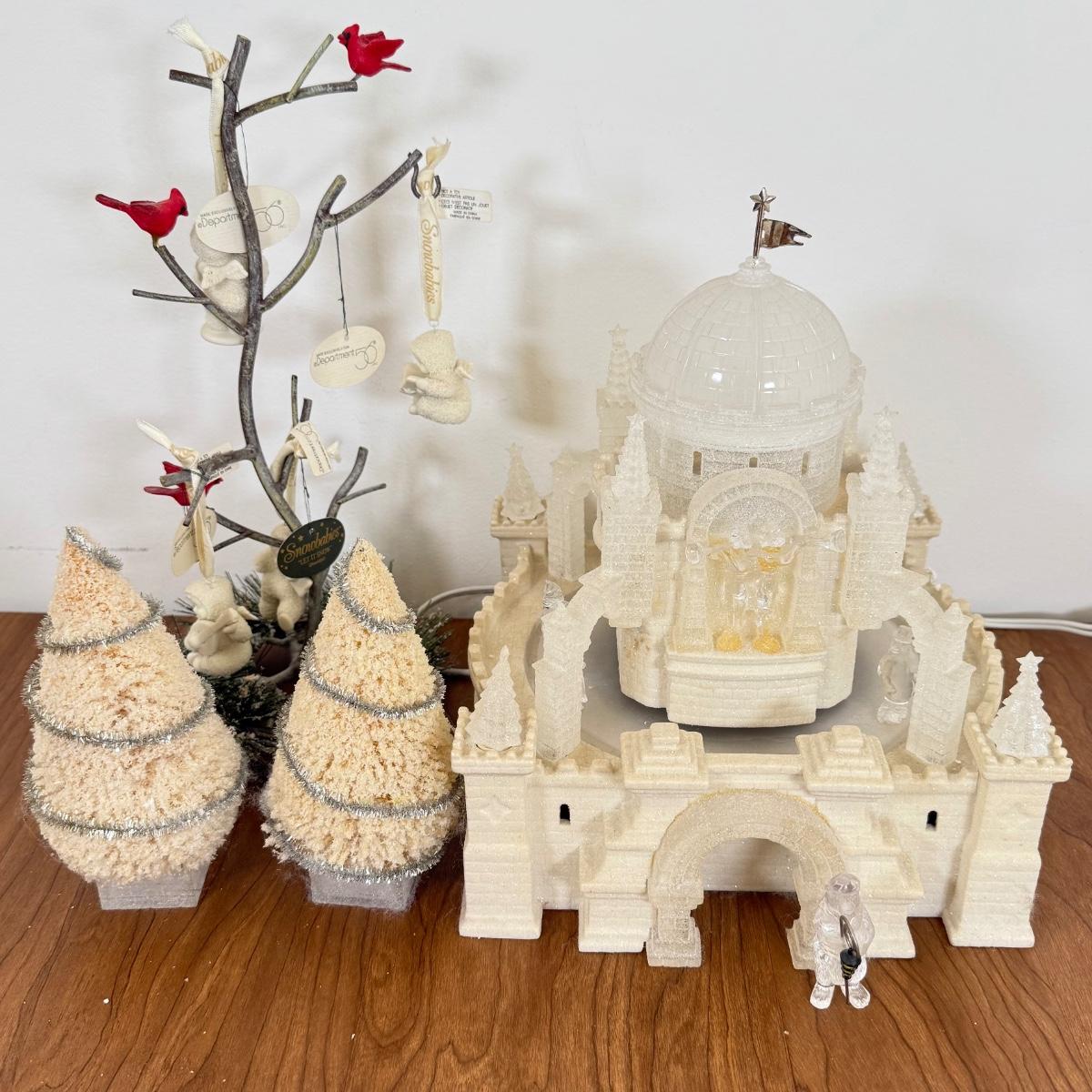 LOT 22B: Department 56 Snowbabies - Crystal Ice Palace, Ornaments w/ Cardinal Display & Cream Bottle Brush Trees