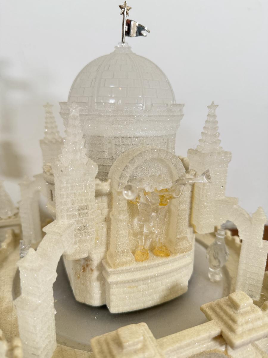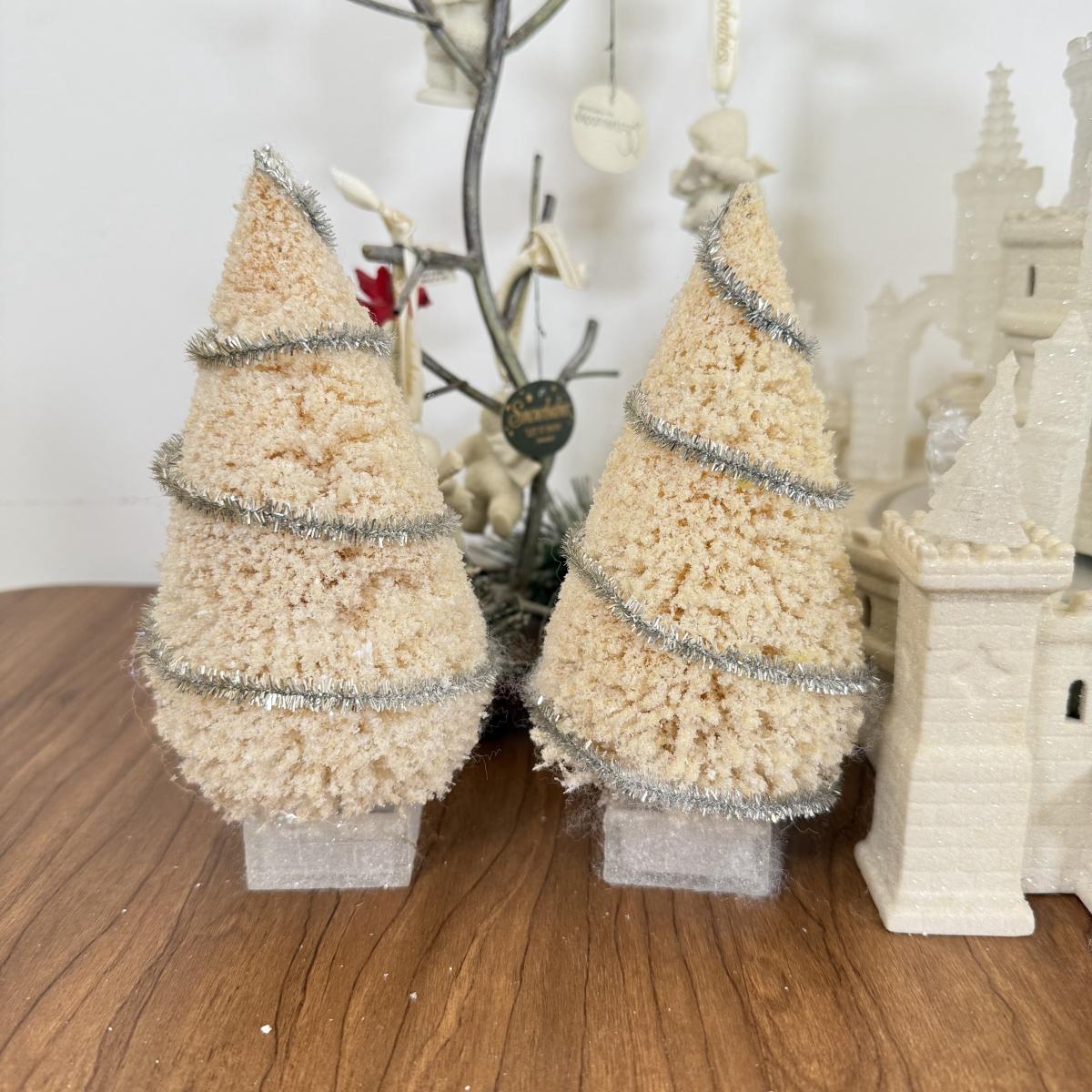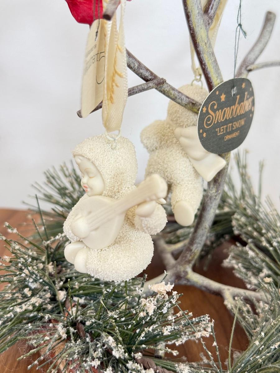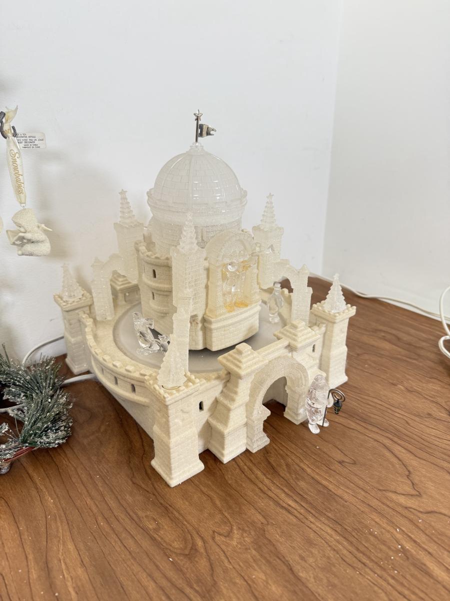 LOT 22B: Department 56 Snowbabies - Crystal Ice Palace, Ornaments w/ Cardinal Display & Cream Bottle Brush Trees