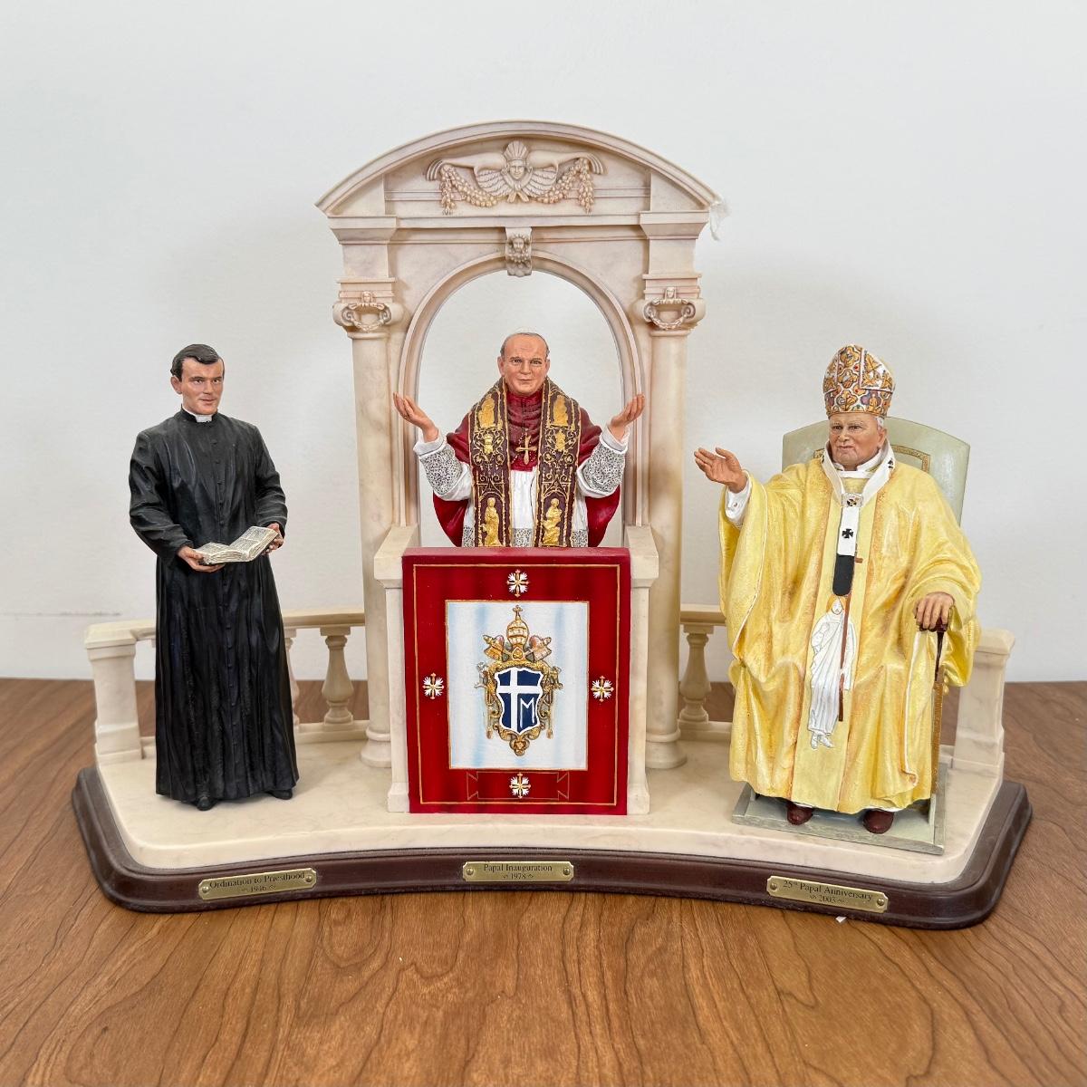 LOT 26B: Danbury Mint Pope John Paul II Statue, Prayer Candle & DiGiovanni Heirloom Statue