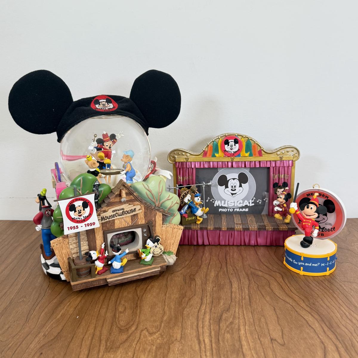 LOT 37B: Disney Mickey Mouse Club - “Mickey Mouse March” Musical Snowglobe, Musical Photo Frame & Hallmark Ornament