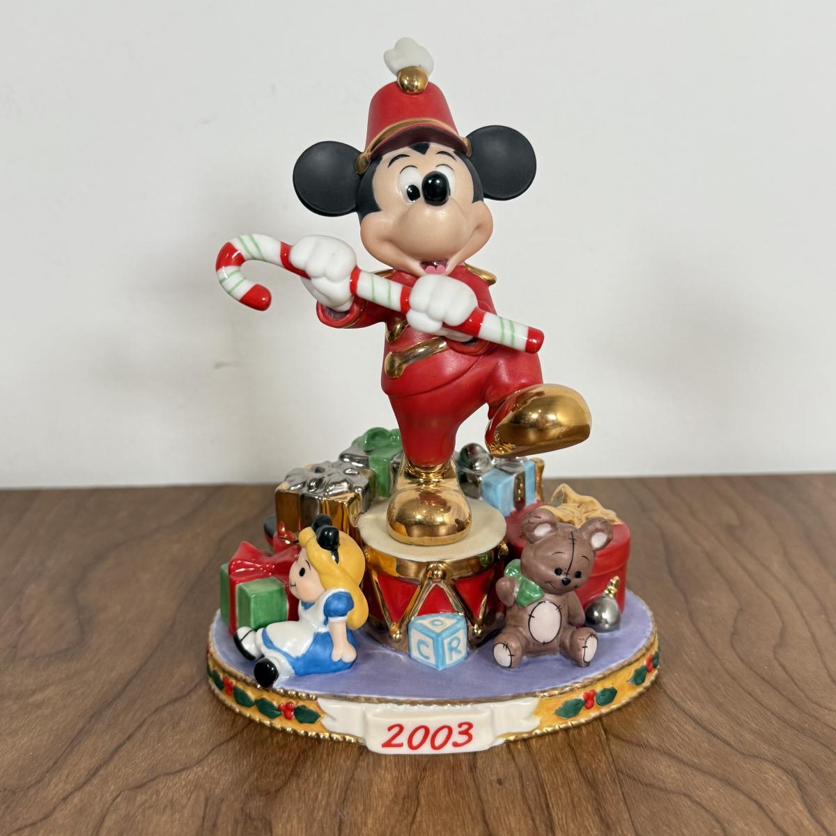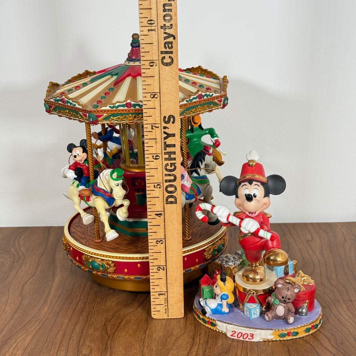 LOT 40B: Disney Mr. Christmas Mickey Holiday Go Round & Porcelain 2003 Mickey Santa Statue