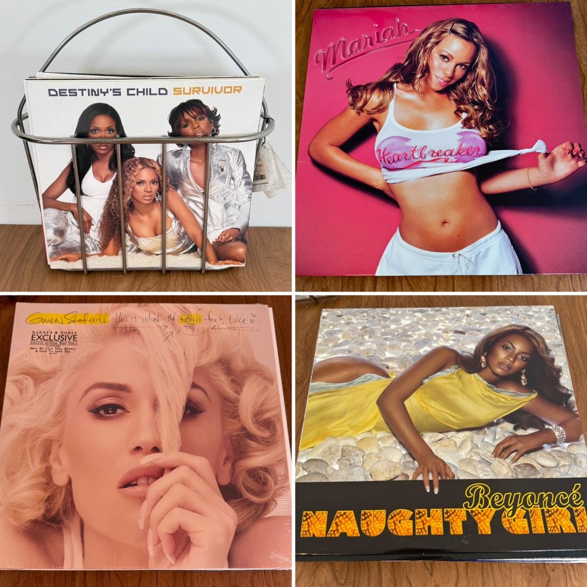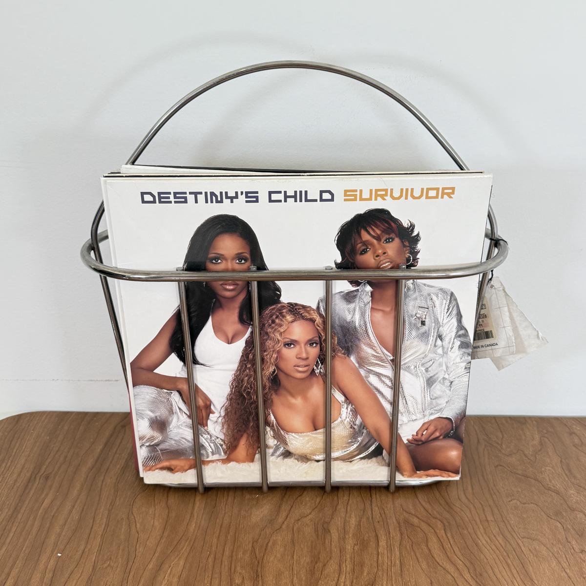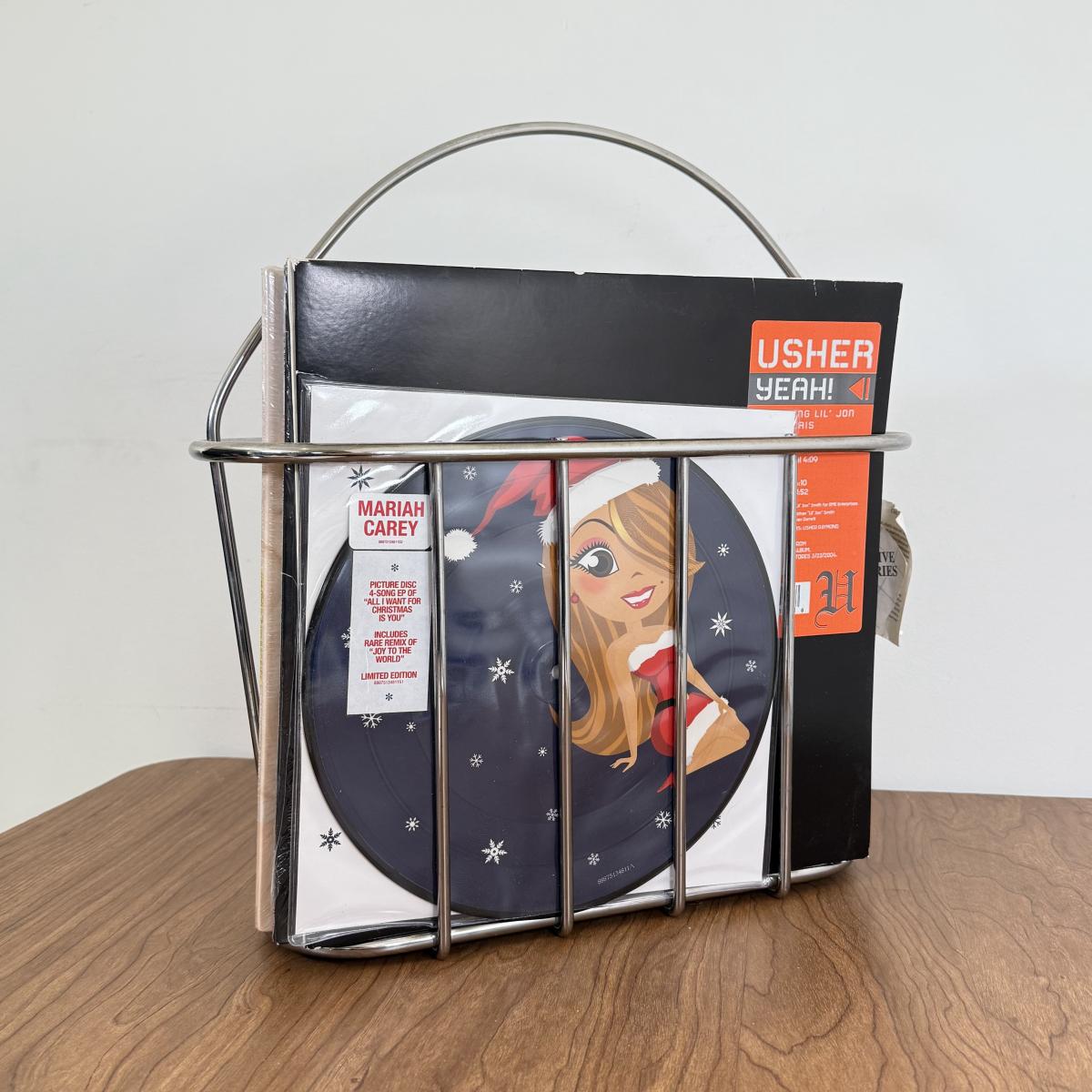 LOT 49B: Vinyl Record Collection w/ Metal Magazine Rack - Mariah Carey, Britney Spears, Gwen Stefani, Beyonce & More