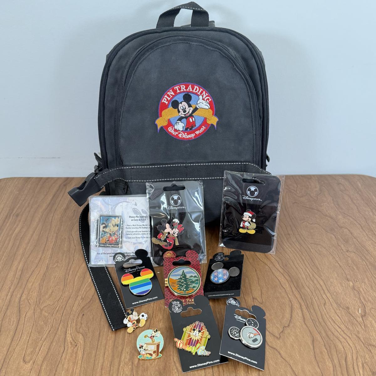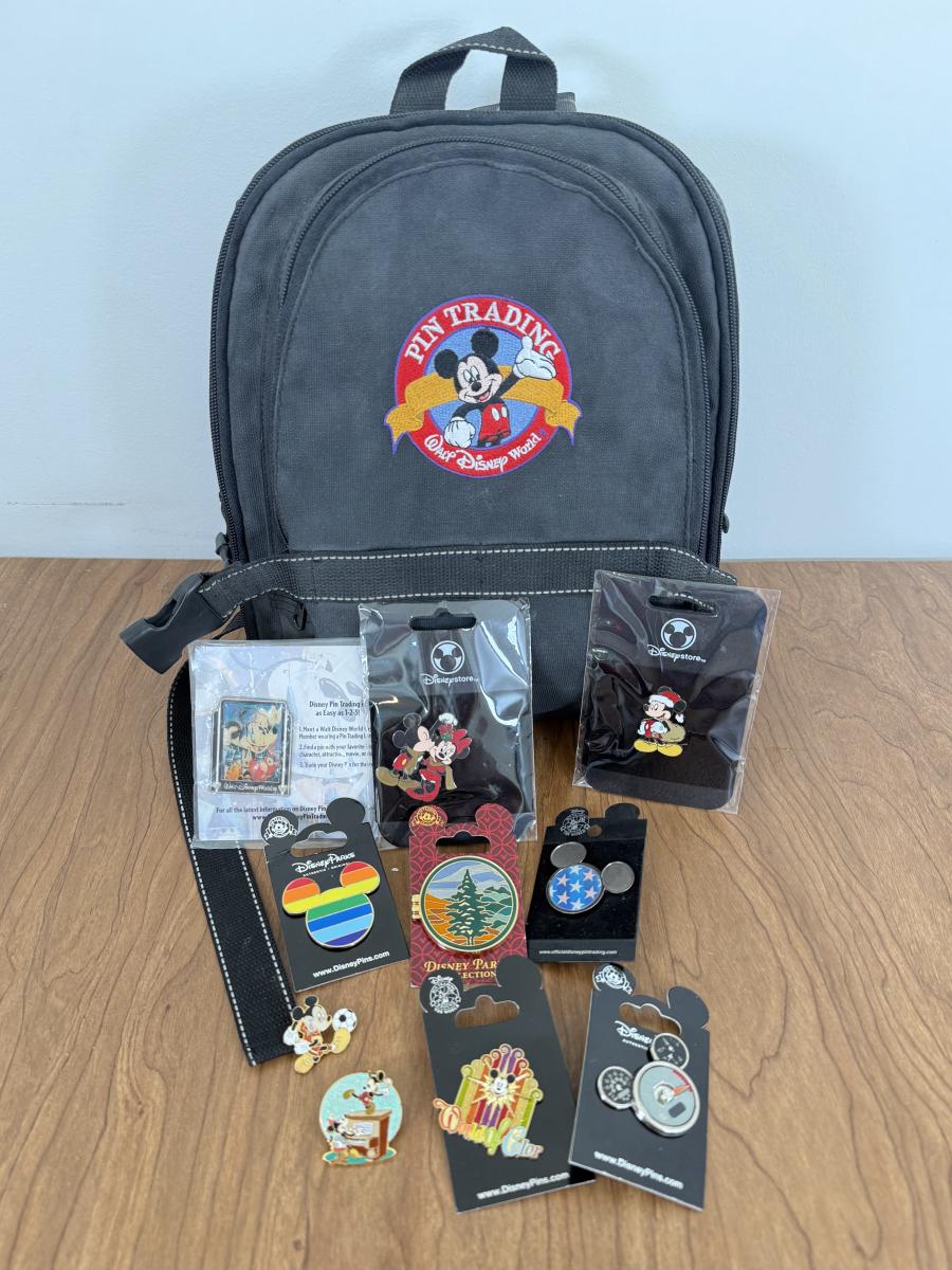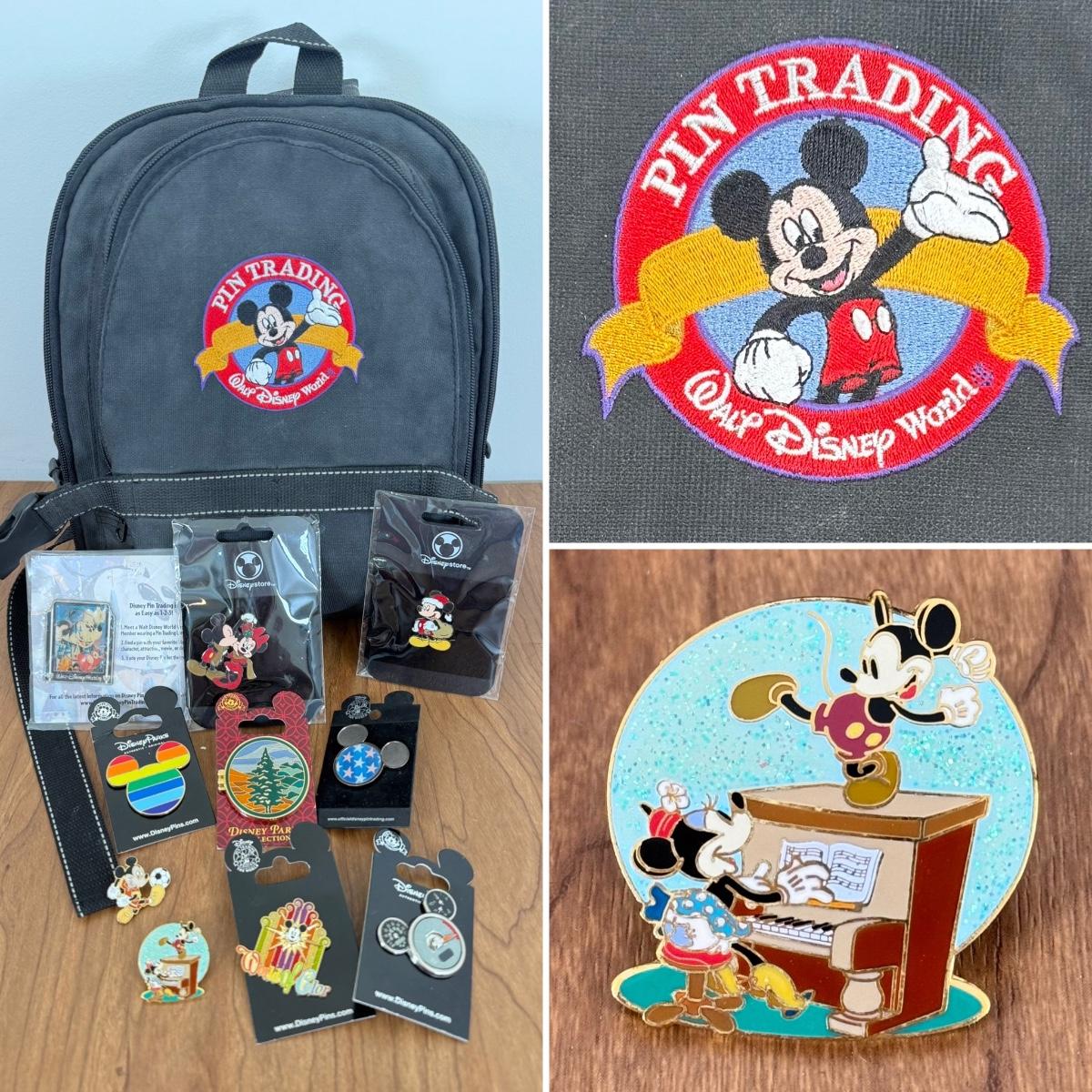 LOT 50A: Walt Disney World Pin Trading Bag w/ Collection of Disney Trading Pins including LE500 Mickey Dancing w/ Minnie Playing Piano