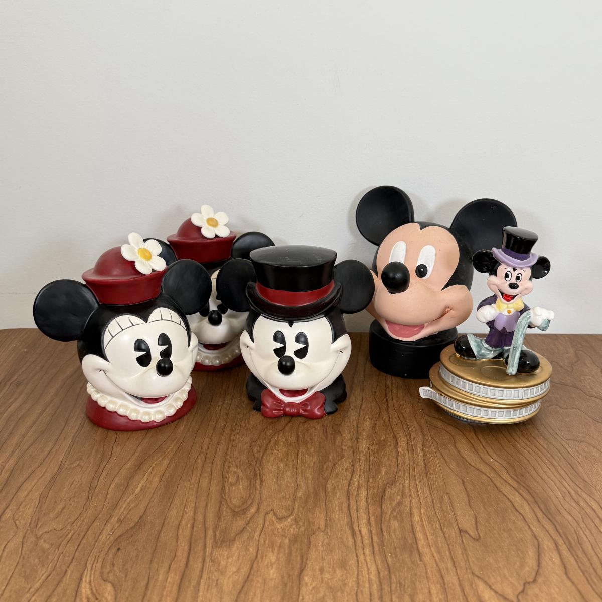LOT 55B: Disney Music Boxes - Vintage Mickey on Film Reels w/ Top Hat, 2 Enesco Minnie "Let Me Call You Sweetheart" & Enesco Mickey "Puttin on the Ritz"