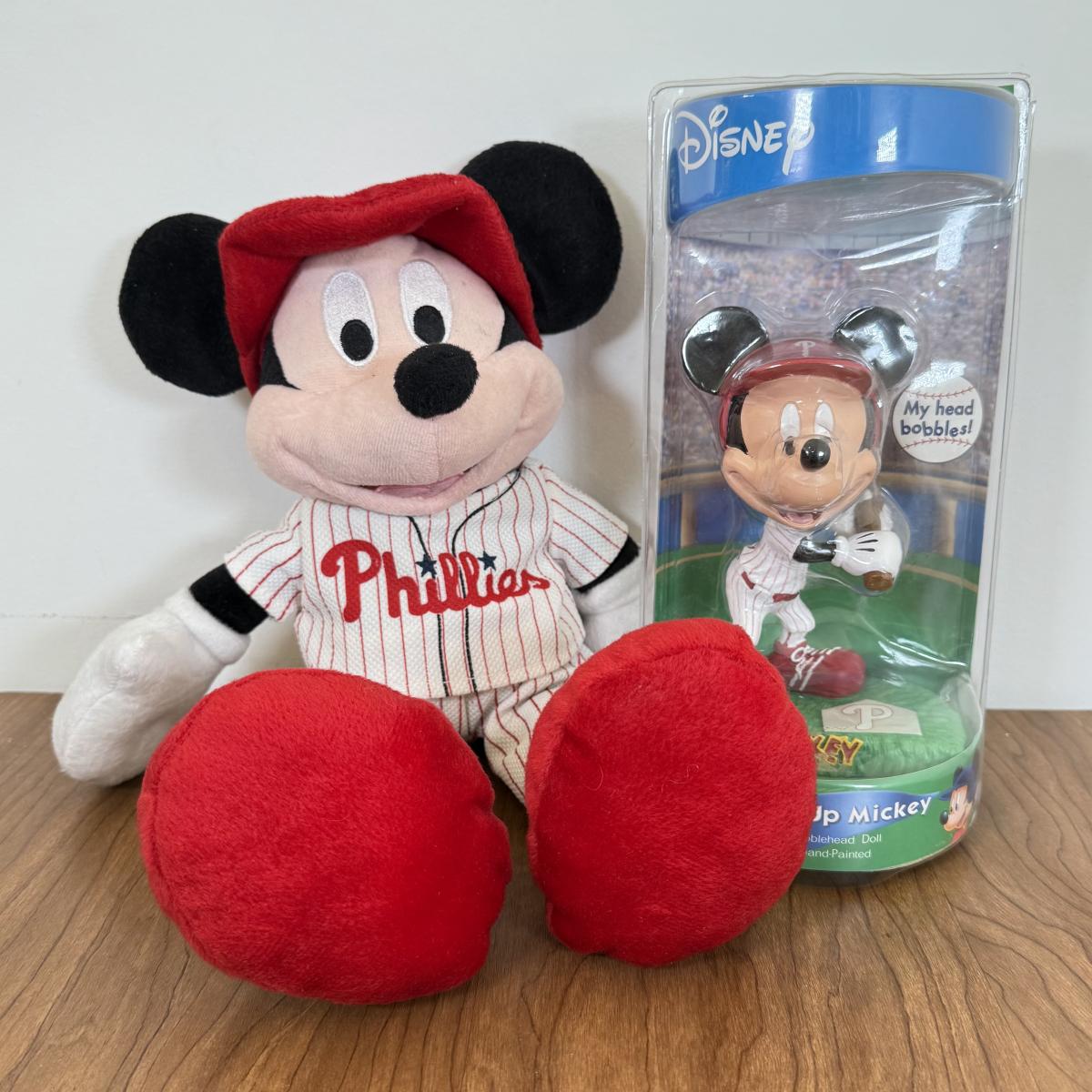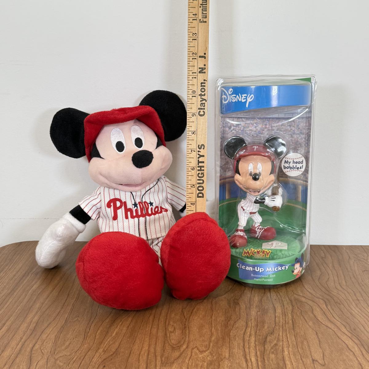 LOT 58B: Disney MLB Philadelphia Phillies Collectibles - Mickey Plush & Bobble Dobbles Mickey Bobblehead