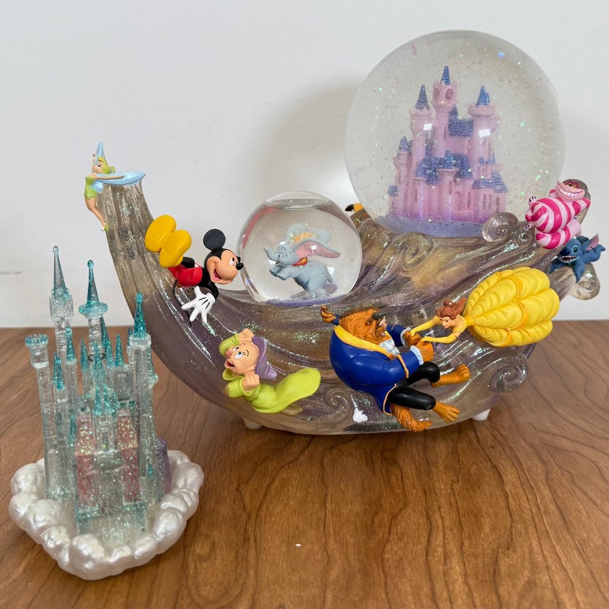 LOT 68B: Disney Store "Zip-A-Dee-Doo-Dah" Lighted Snowglobe & Glittery 2001 Cinderella's Castle Hallmark Ornament