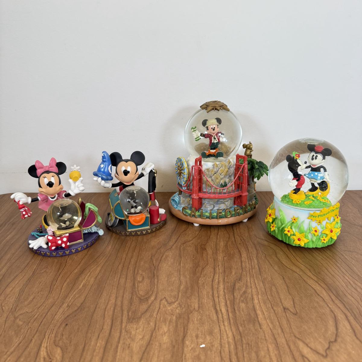 LOT 75B: Disney Snowglobes - Enesco "In the Good Old Summertime, California Adventure "California Here I Come" & Disney Parks Mickey and Minnie w/ Wardrobe Chests