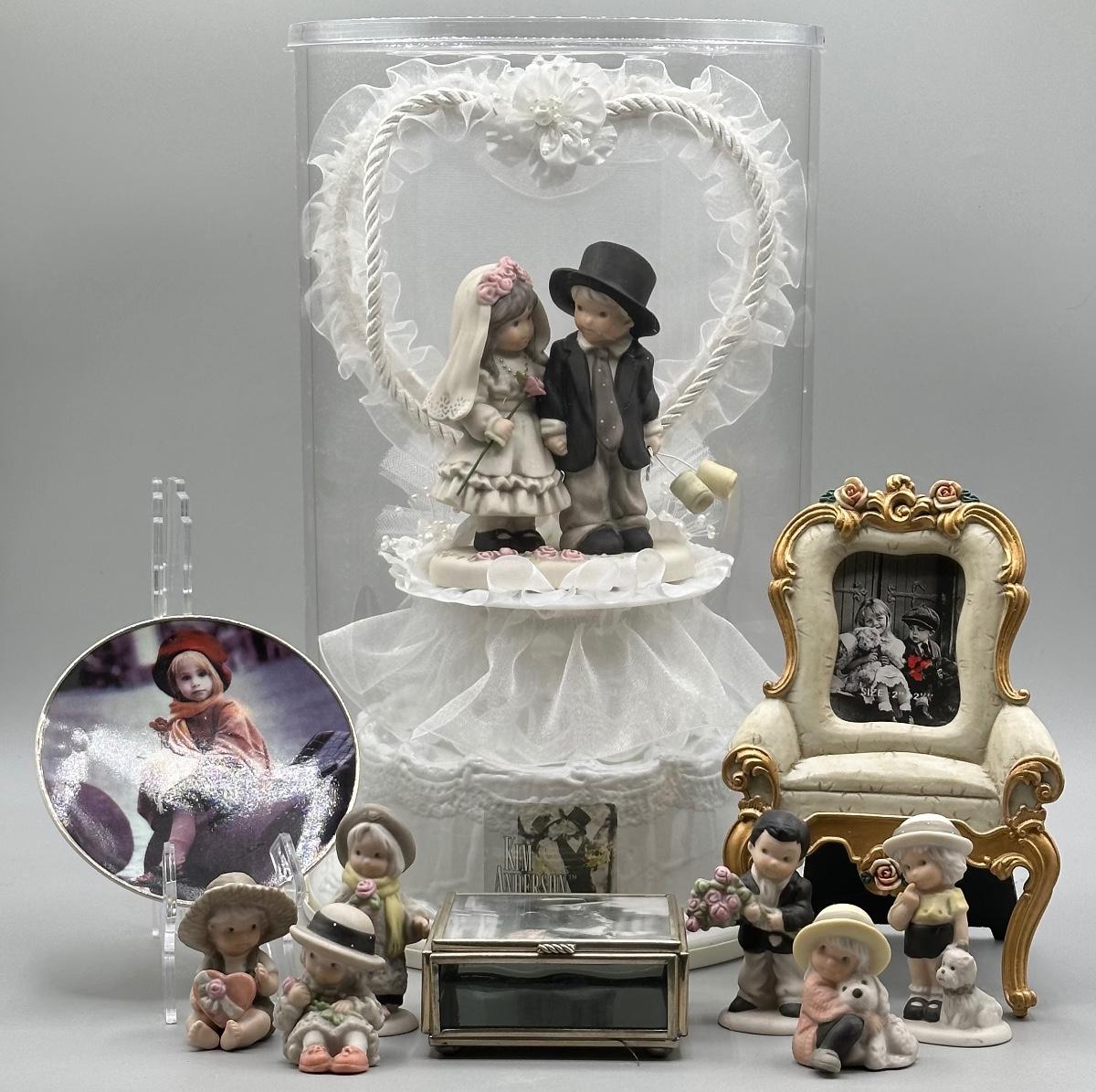 LOT 92B: Vintage Enesco Figurines, Cake Topper & More