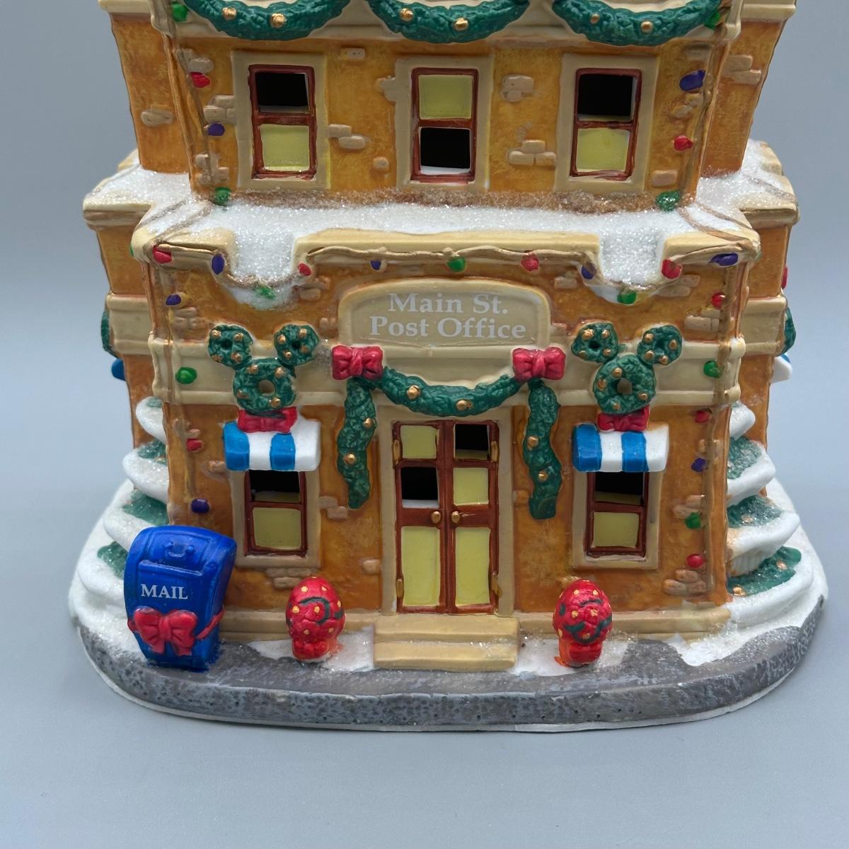 LOT 98B: Vintage Disney Main St Post Office Christmas Village Ceramic House w/ Figurine
