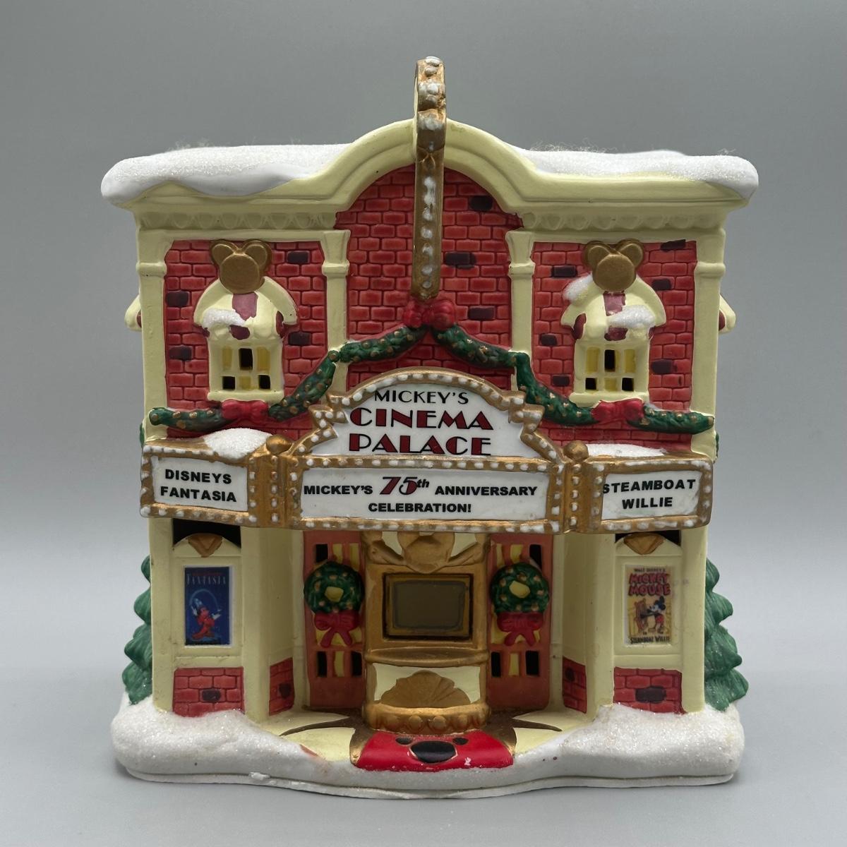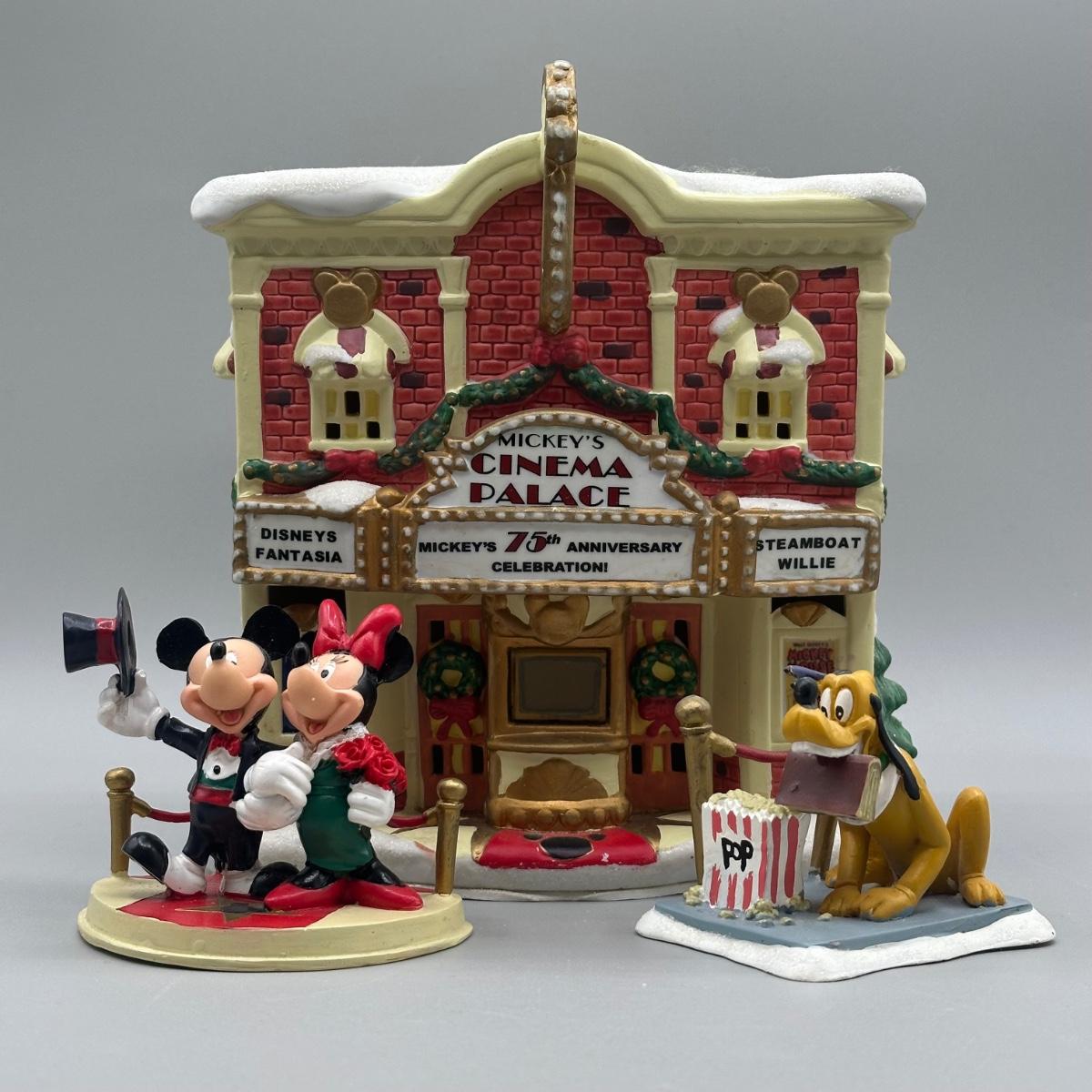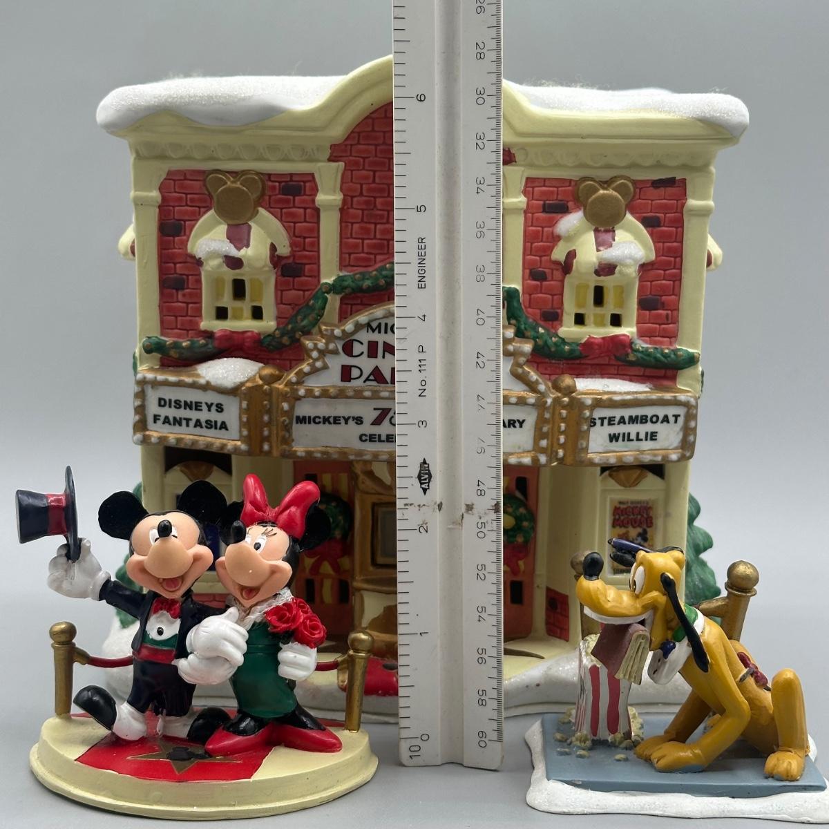 LOT 99B: Vintage Mickeys Cinema Place Christmas Village Ceramic House w/ Figurines