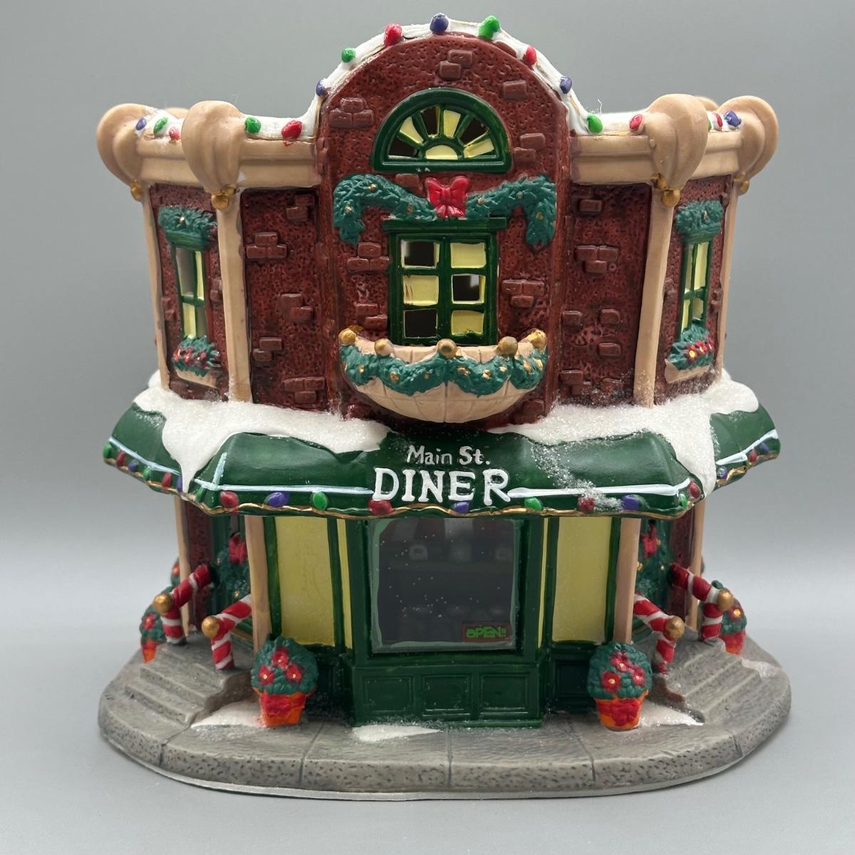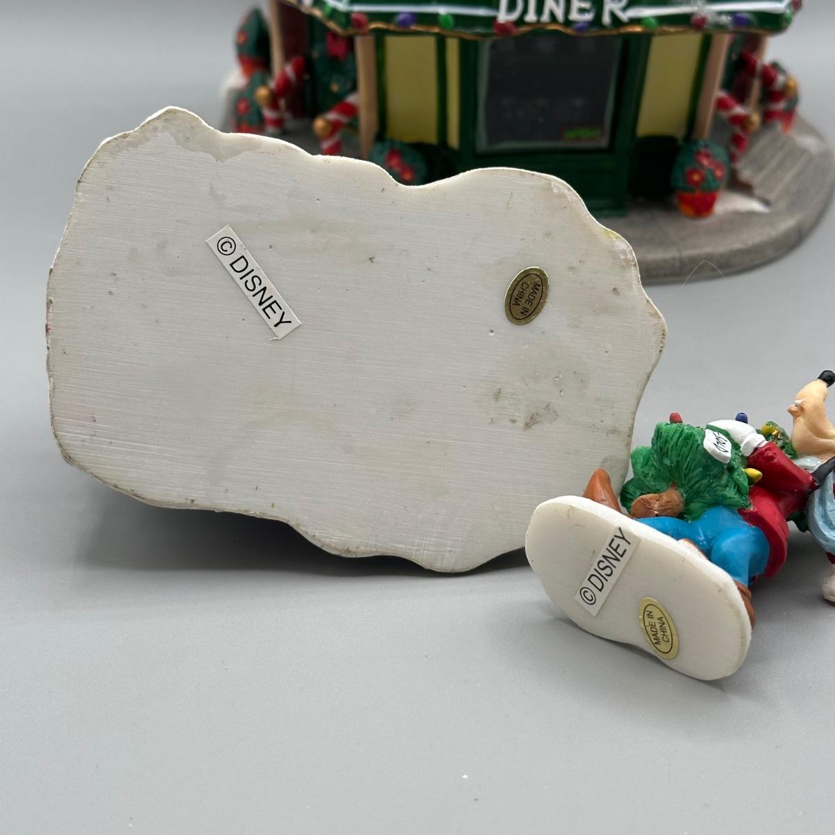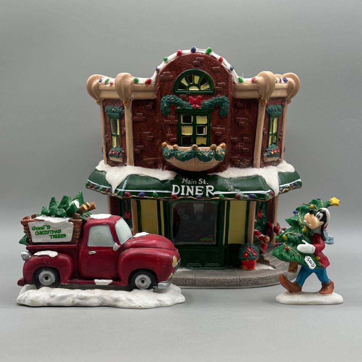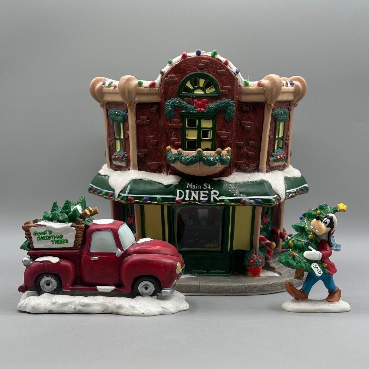 LOT 100B: Vintage Disney Main St Diner Christmas Village Ceramic House w/ Figurines
