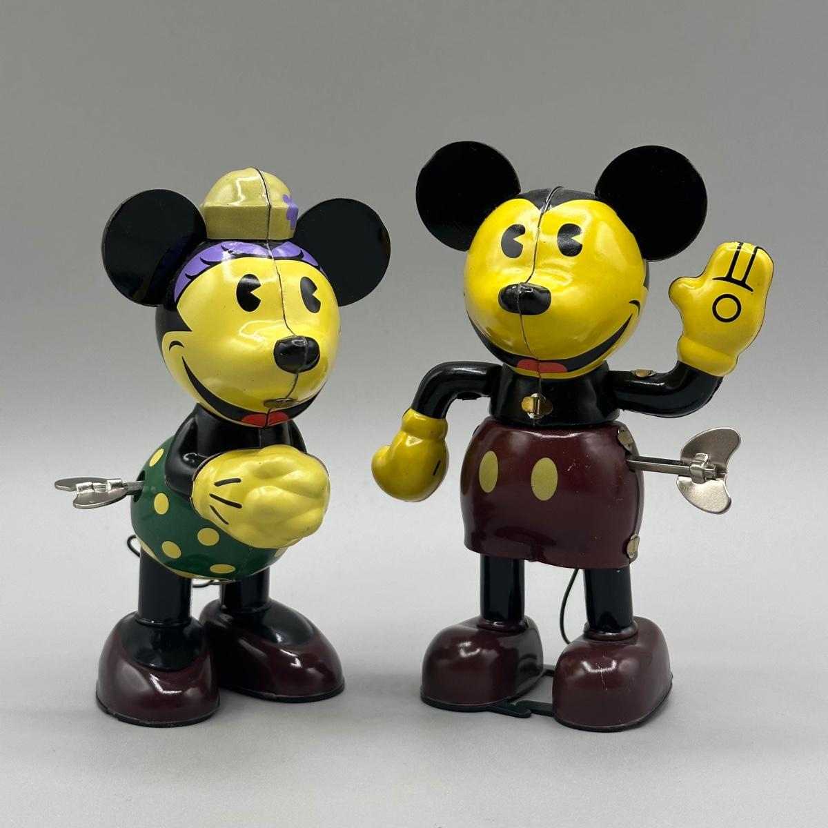 LOT 139B: Vintage Mickey & Minnie Mouse Schylling And Friends Tin Wind Up Retro Toys