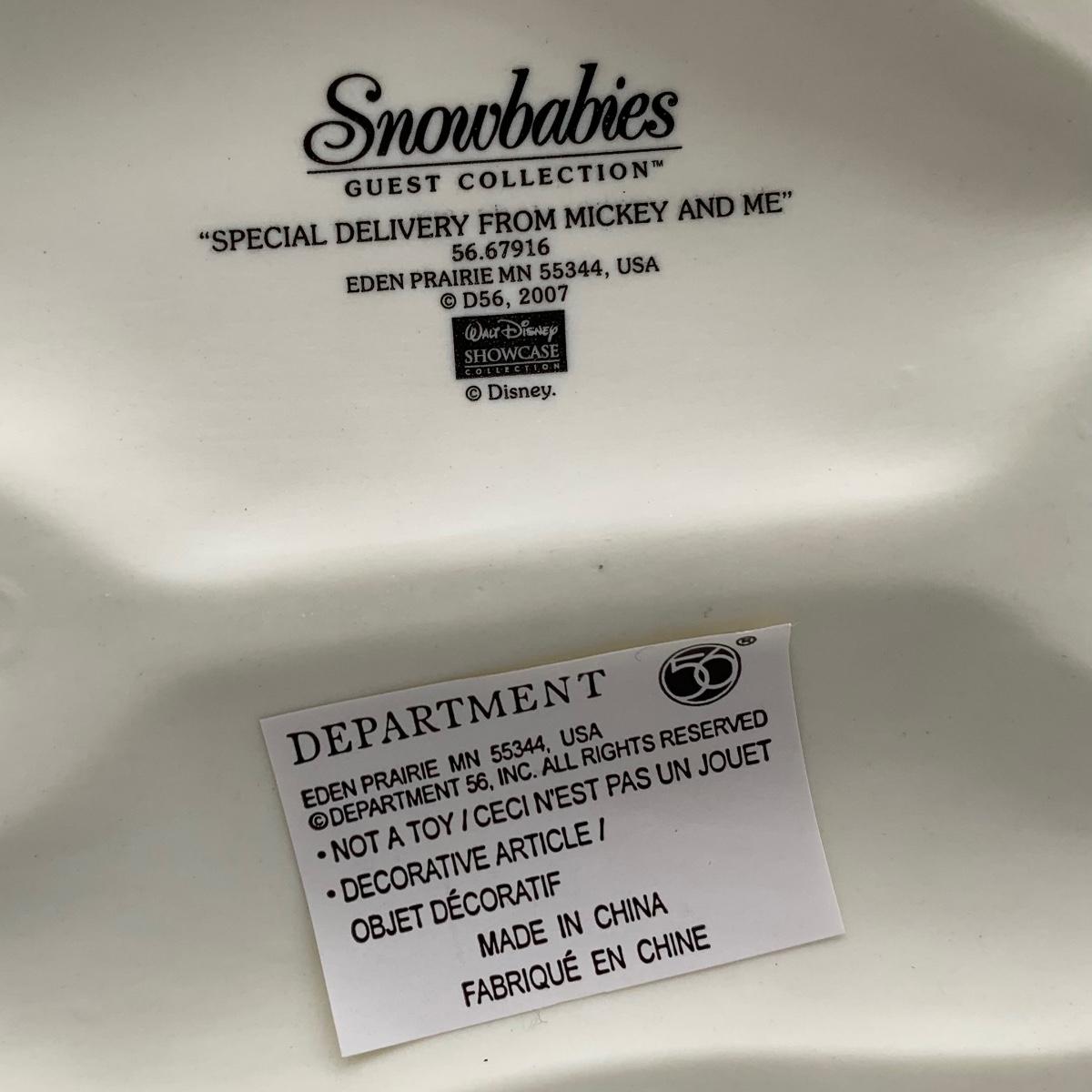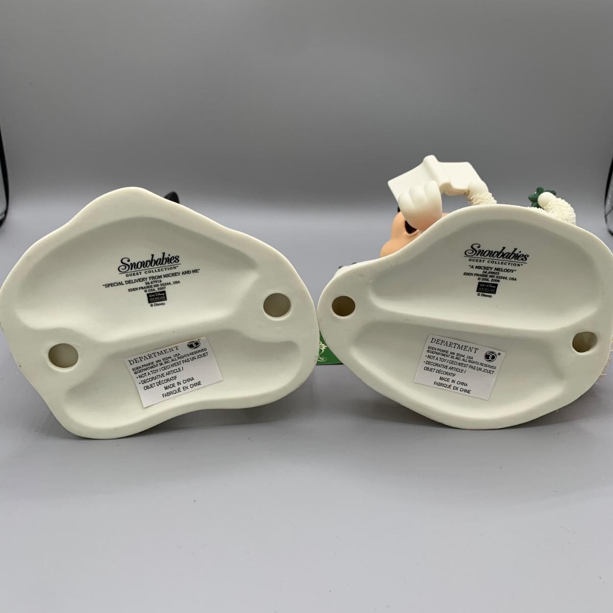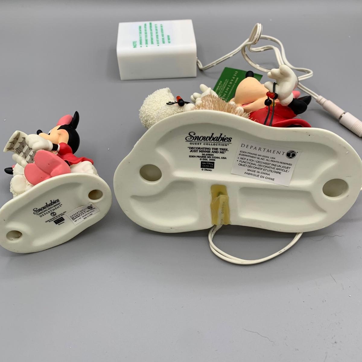 LOT 172 B: Department 56 Snowbabies Guest Collection: "Special Delivery From Mickey And Me", "A Mickey Melody", "Decorating The Tree, Just Minnie And Me", & "Caroling With Minnie"