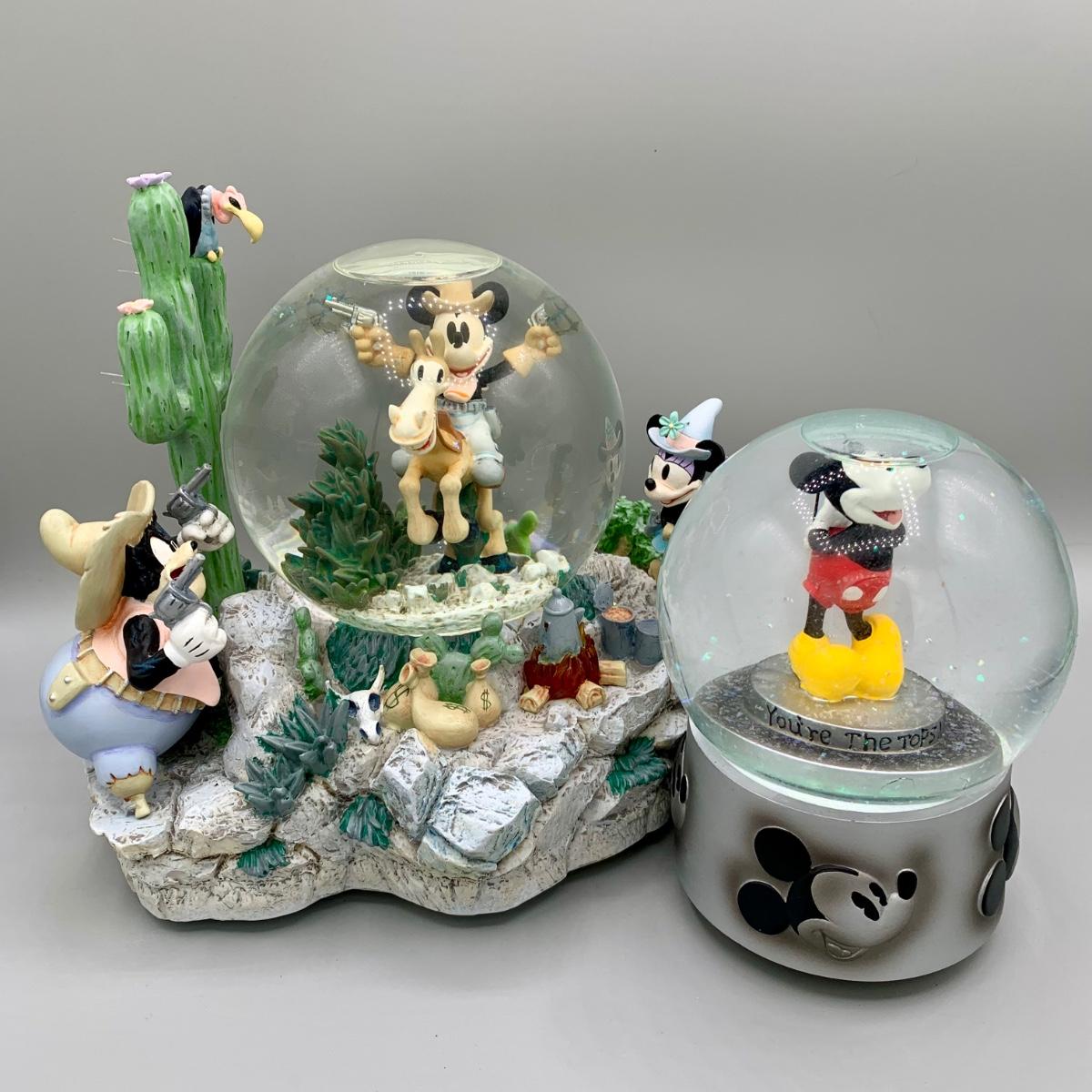 LOT 182 B: Disney Cowboy Mickey Tune "Home On The Range" & Mickey Mouse Tune "Mickey Mouse March" Musical Snowglobes