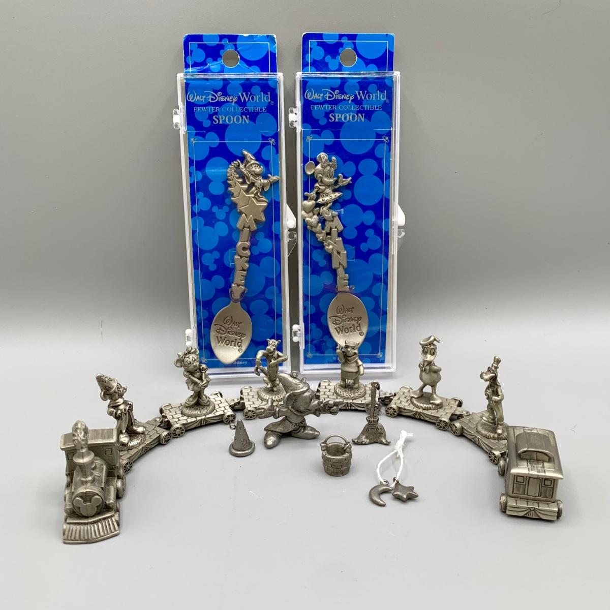 LOT 201 B: Disney Pewter Collection: Mickey And Minnie Collectible Spoons, Train Set, & More