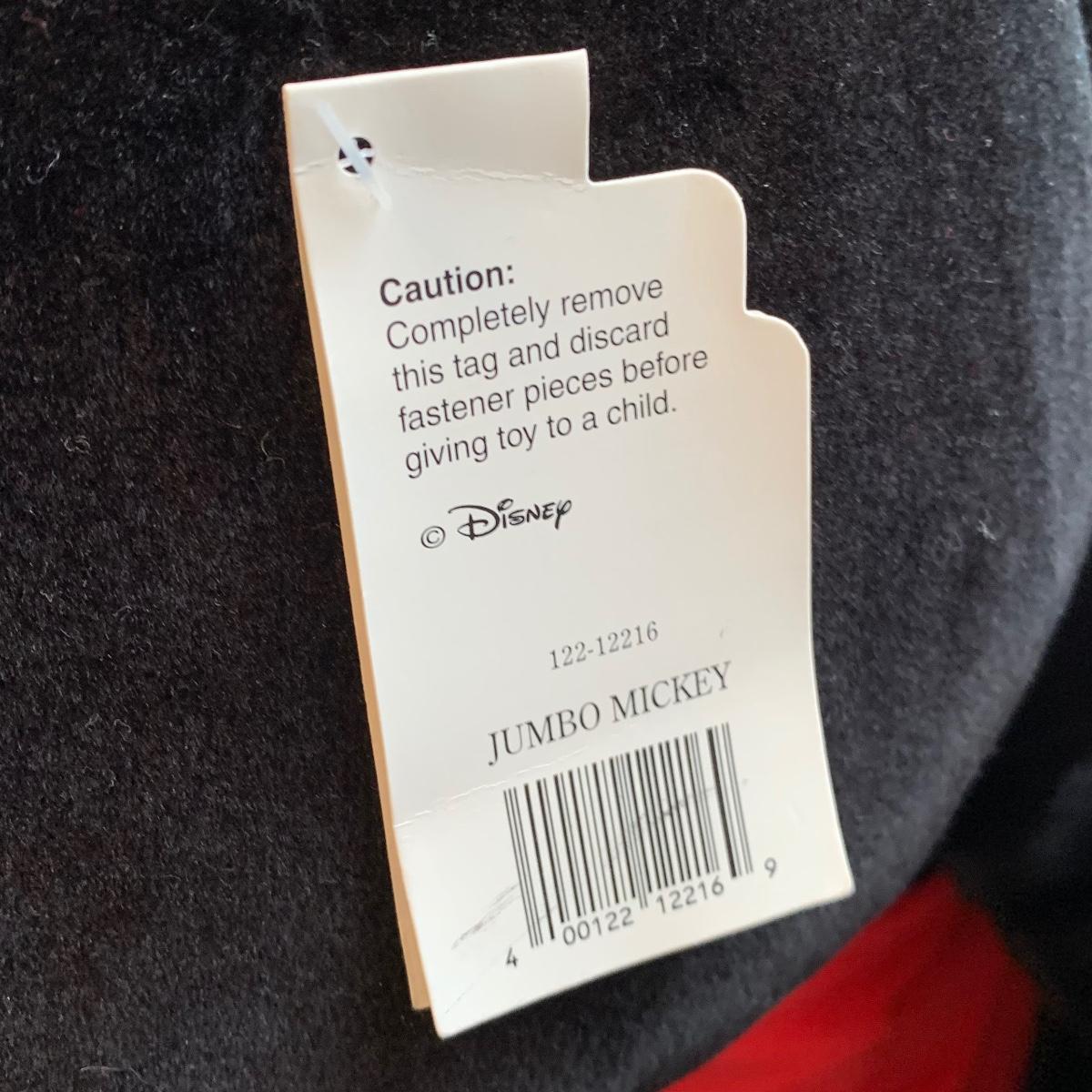 LOT 214 A: Disney Jumbo Mickey Mouse Stuffed Animal w/ Tags