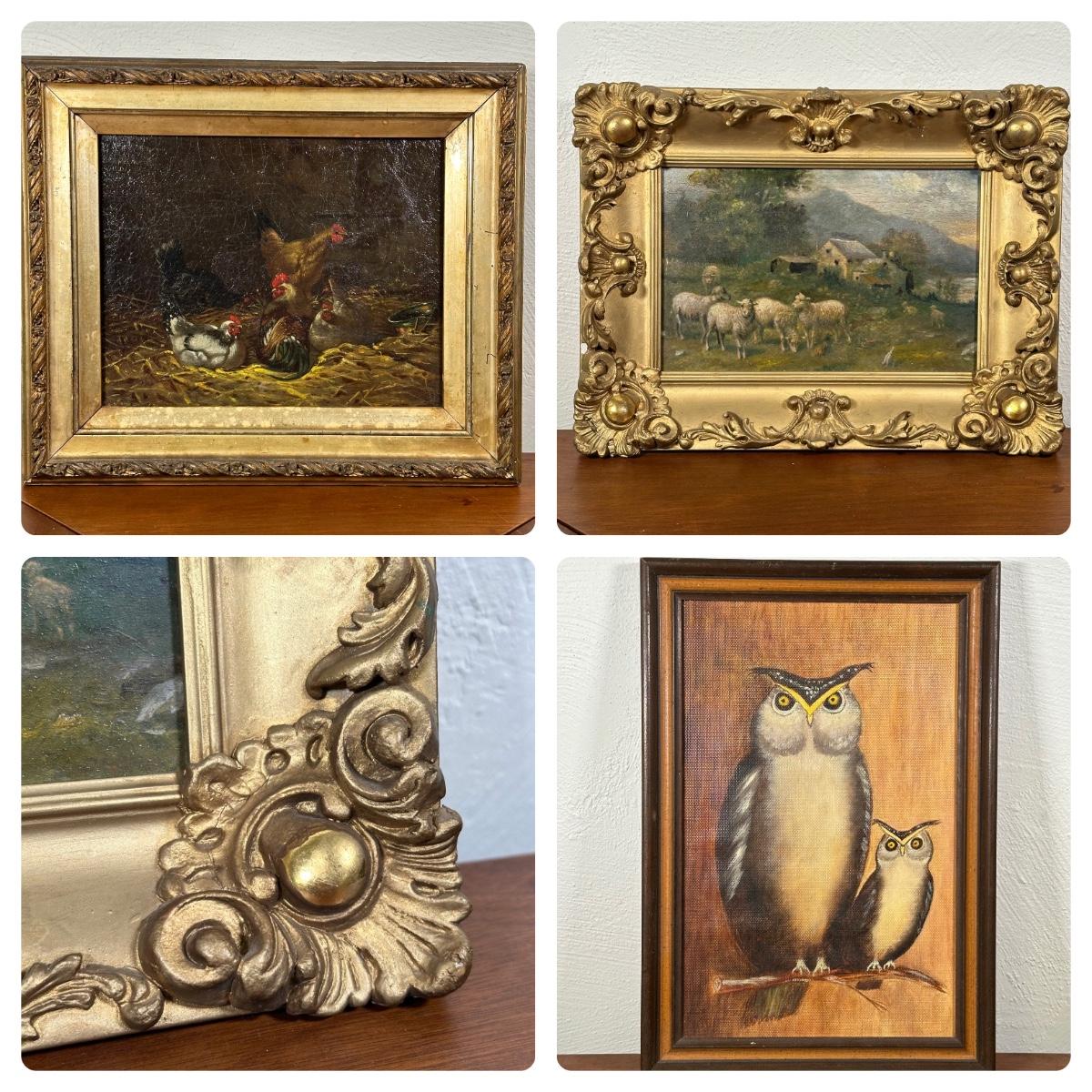 Chickens-13.5x11.5, owl-13.5x19.25, sheep-11.25x8.5 - Please see all pictures as they are the best representation of the items. The pictures show condition, measurements if taken, and what is included in the lot. Due to the large amount that we photograph and the time frame, we are not always able to take measurements. All items unless noted, are pre-owned and have been used. If you purchased furniture, you must bring help. We do not allow one person to carry large furniture out on their own. Bring help, tools and a truck for the safety of our client’s homes, and your personal safety. Any damages that result to the property including walls, and floors due to moving of the furniture will be charged to the buyer. Company policy. Thank you.