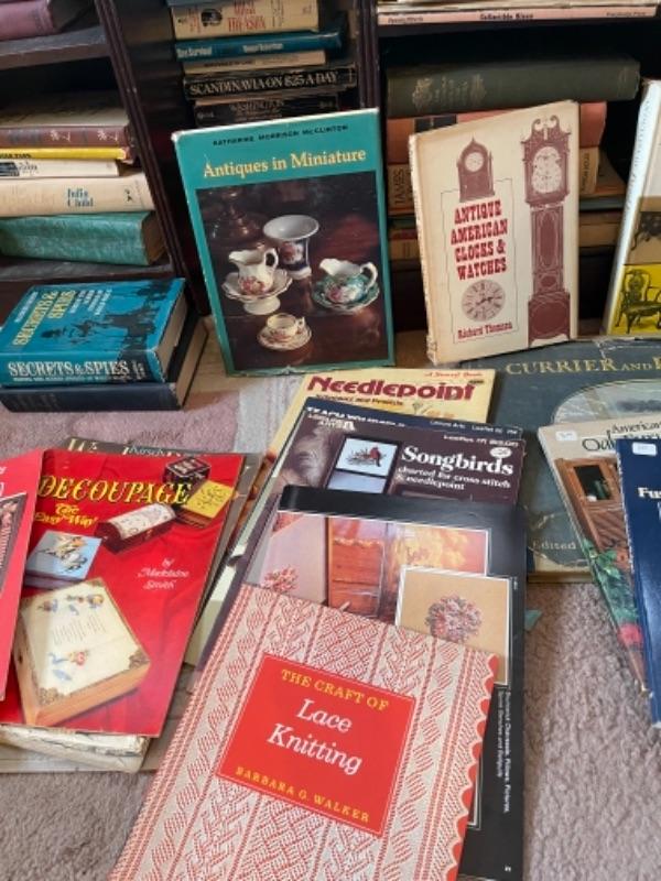 Lot 109B1. Collection of vintage books and magazines (McCalls crafting, fiction, reference, history, etc.--$85