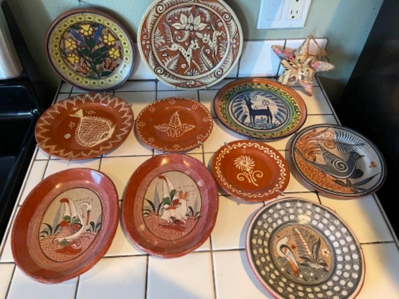 Lot 109K. Ten ceramic plates from Mexico, Tlaquepaque redware, Talavera, Tonala--$200