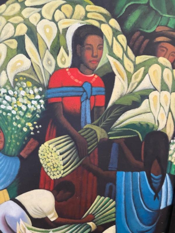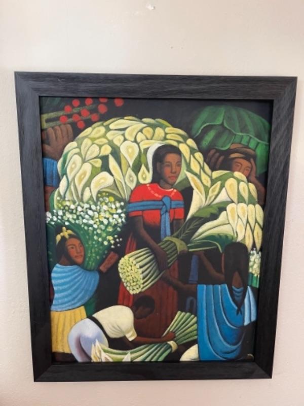 Lot 10LD. Acrylic on board folk art calla lilies, wood frame (15-1/2” x 20-1/2”)--$65