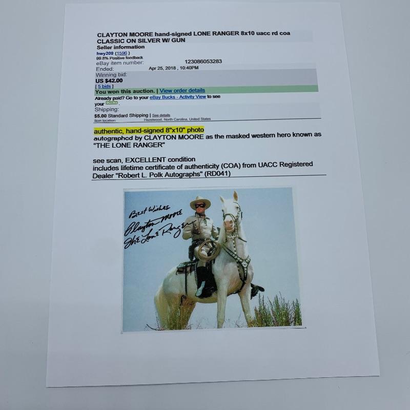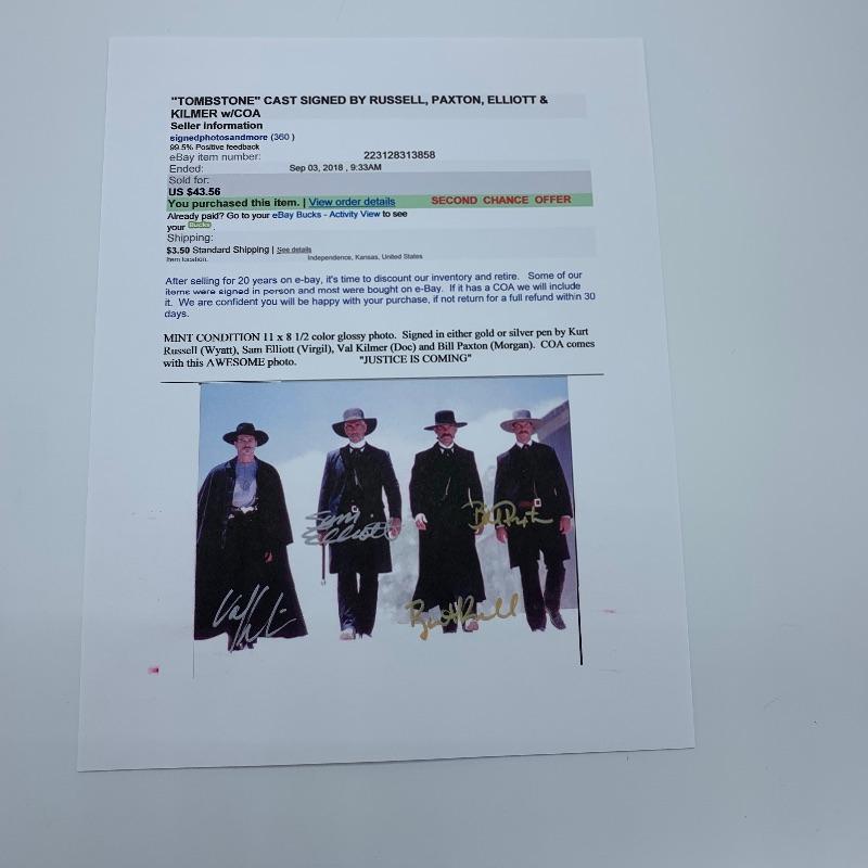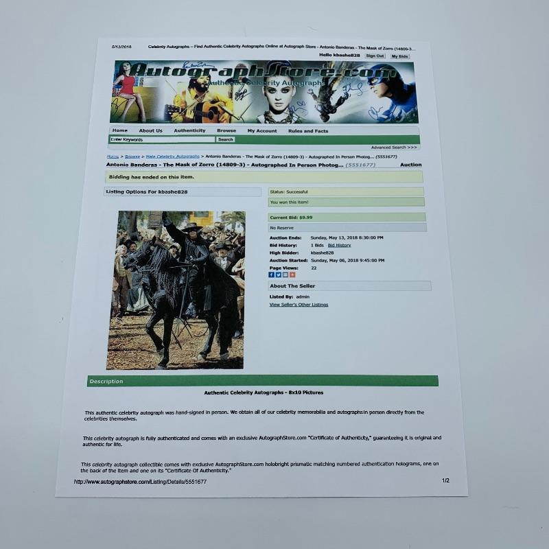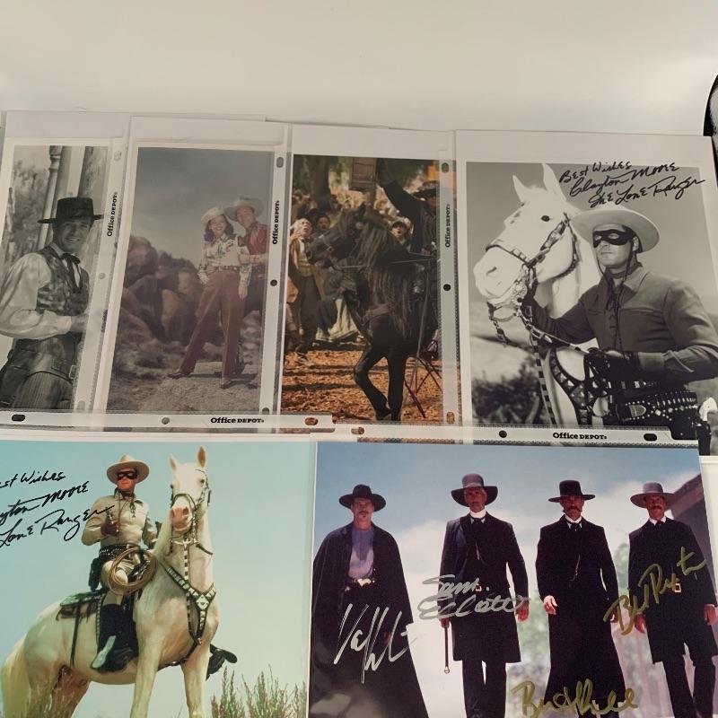Cowboy Movies will forever be the boys favorites. This lot includes the full cast of Tombstone movie, two photos of the Lone Ranger, Roy Rogers, Antonio Banderaas (Zorro), and Hugh O'Brian. The O'Brian photo does not include a COA but includes a photo of him at the signing. All other photos have COAs.