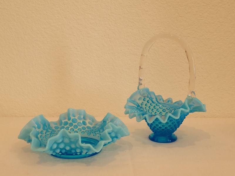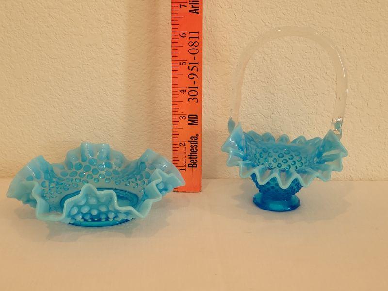 Lot 11: Vintage Fenton Hobnail Dish & Basket
